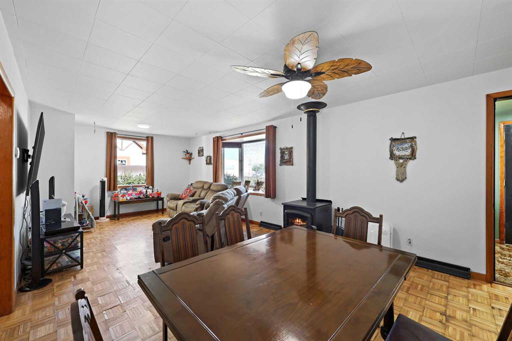 Welcome to this warm and inviting 4-bedroom, 1-bath country-style home nestled in the heart of Irricana—just 30 minutes from Calgary! Situated on a massive corner lot the size of four standard lots, this property offers an abundance of space with 1837 sqft of developed living space, privacy, and natural beauty with mature trees and fruit shrubs throughout. Inside, you’ll find a bright and spacious layout with two bedrooms and a full 4-piece bath on the main floor, and two additional bedrooms plus a den upstairs perfect for a home office or playroom. The home features a large kitchen with ample cabinet space, a designated dining area, and three separate entrance points, making it functional and family-friendly. A cozy wood-burning fireplace anchors the living area, creating a perfect spot to gather and unwind. You’ll love the abundance of storage throughout the home, including cold storage or a hobby room in the basement. Step outside to your private backyard oasis—ideal for family gatherings, gardening, or simply enjoying peaceful evenings around the fire, soaking in the quiet serenity of small-town living. A huge detached garage with a hoist offers incredible potential for a mechanic, hobbyist, or small business owner. Located in a quiet and friendly neighbourhood, with local amenities nearby and additional services just 10 minutes away in Beiseker, this property is perfect for families or investors looking to subdivide the oversized lot. This home has been thoughtfully updated over the years and is ready for its next chapter—don\'t miss out on this unique opportunity! A must-see for those craving space, charm, and small-town peace.