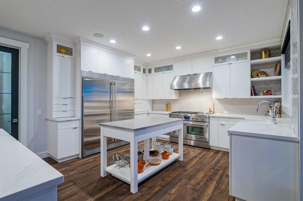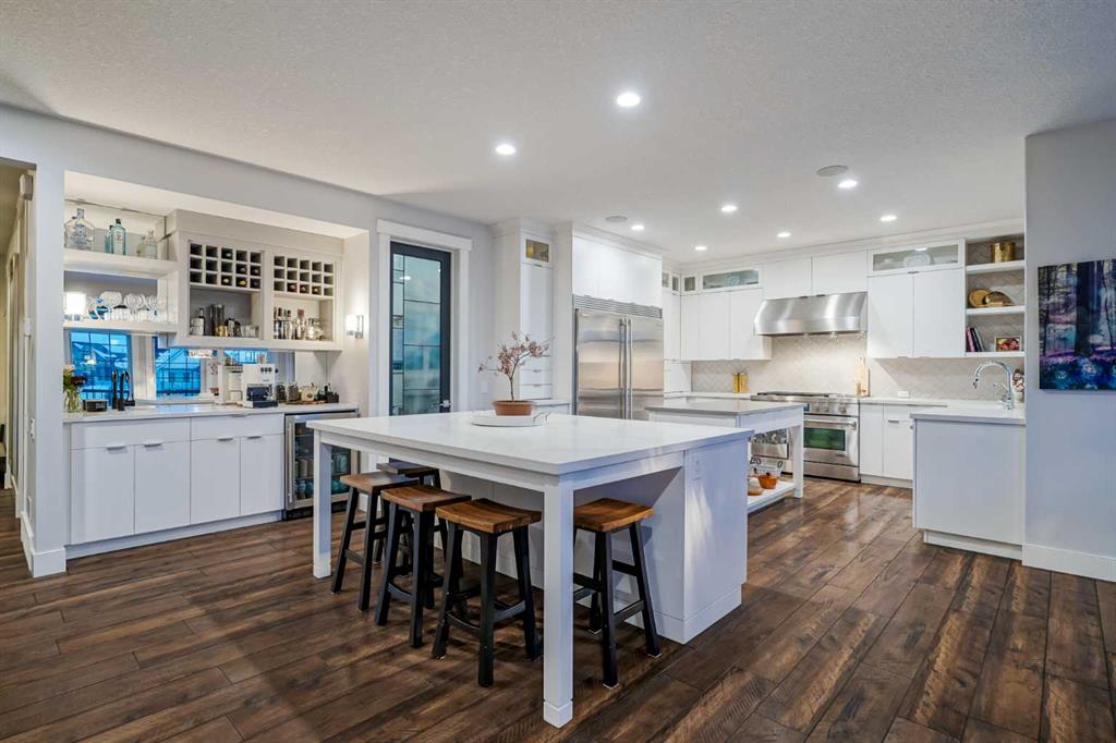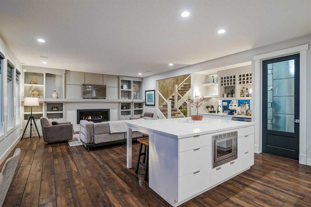 **OPEN HOUSE SUN MAR 14th 2PM - 4PM** Welcome to this exceptional McKee-built custom home in the prestigious community of Coopers Crossing, where refined craftsmanship meets unobstructed pond-side living. Offering over 3,700 sqft of professionally developed living space, this fully finished 4-bedroom, 3.5-bathroom walk-out home delivers an elevated lifestyle defined by architectural detail and premium upgrades. From the moment you arrive, the curb appeal is undeniable - an exposed aggregate driveway, covered front porch with cedar soffit detailing, and a fully landscaped lot create a strong first impression. The 708 sqft triple tandem heated garage is both functional and impressive, complete with overhead storage and room for vehicles, toys, or workshop space. Inside, a dramatic open-rise staircase anchors the main level, while engineered hardwood flooring flows throughout. The great room is designed for both everyday living and upscale entertaining, featuring a custom fireplace surround with built-ins and expansive windows framing tranquil pond views. The chef-inspired kitchen is a true showpiece. Thoughtfully upgraded with crisp white cabinetry, double islands, and premium stainless steel appliances, it includes a 48” Jenn-Air dual-fuel gas range, Vent-A-Hood range hood, and Electrolux side-by-side refrigerator/freezer. An exquisite under mount sink and refined finishes complete this elevated culinary space. From this level, step outside to your private backyard oasis: a full-width 33’4” x 9’8” composite deck with stairs leading to professionally designed stone scaping, low-maintenance turf, and a dedicated firepit and patio area (15’4” x 10’4”). Upstairs, vaulted ceilings and two skylights flood the bonus room, primary suite, ensuite, and laundry room with natural light. The primary retreat offers serene water views and a spa-inspired ensuite designed for relaxation. Three additional bedrooms complete the upper level, including one with a charming Juliet balcony. The fully developed walk-out basement extends the living space seamlessly outdoors and features a wet bar, spacious recreation area, hobby room, and additional storage. Morning coffees overlooking the water in summer. Skating on the pond in winter. This is a home designed to be experienced in every season. Additional highlights include upper-level exterior pot lights, custom built-ins throughout, security camera system and panel, pre-wired in-ceiling speakers with two Sonos bridges, dual furnaces plus A/C. Rarely do homes combine this level of finish, functionality, and uninterrupted pond views in one of Airdrie’s most sought-after communities. This is luxury living - without compromise.