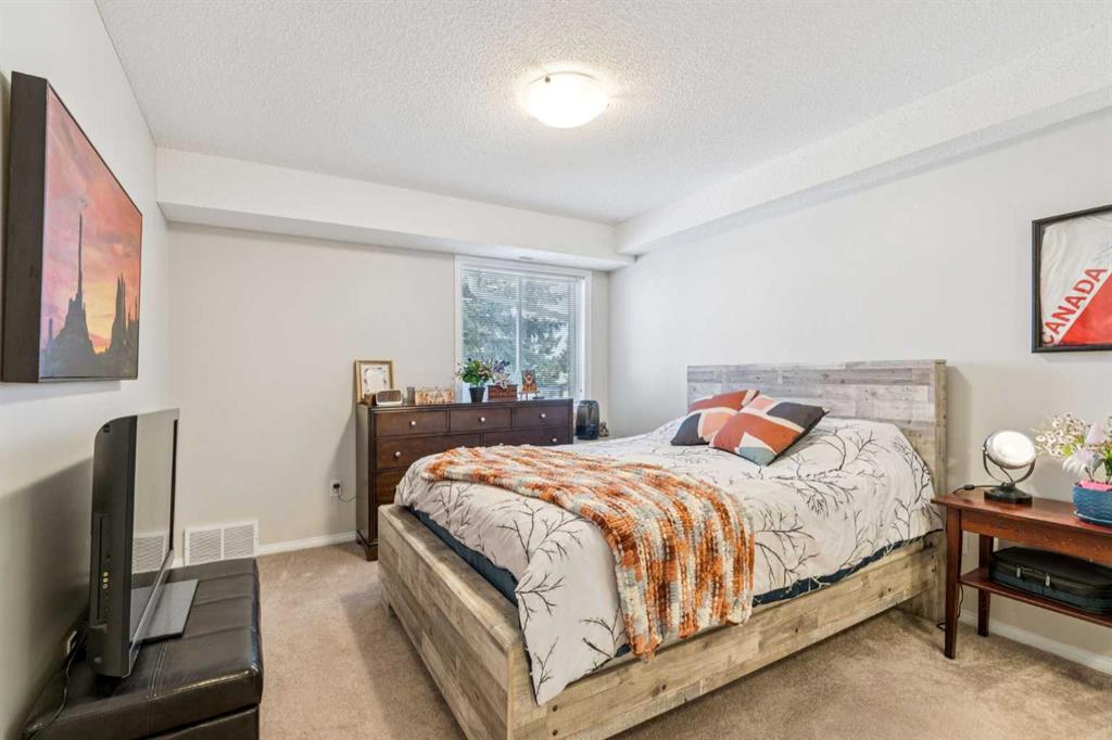 Retire your Cares - NOT your Dreams! Immaculate TOP FLOOR 2 Bedroom/2 Bath Condo with TREED Courtyard Views, AMAZING In-House Amenities & Numerous UPDATES throughout! Stylish Modern Kitchen - QUARTZ Counters, Crisp White & Blue Cabinetry, Stainless Steel Fridge & Dishwasher & Convenient Side PANTRY. Flexible Open Living & Dining Area with lots of natural light - Generous Master with WALK-THRU Closets & Ensuite bath, Spacious 2nd Bedroom perfect for Guests or a Computer/Sewing/Craft Room, 2nd full Bath with “Easy Access” Shower & Private Balcony for relaxing morning coffees with Sunrise views. There’s a large Laundry & Storage Room with newer washer & dryer Plus an X-TRA Storage Locker in your UNDERGROUND parking stall. How’s your SOCIAL calendar? Dana Village offers daily activities - fitness classes, movie nights, potluck dinners, game nights & a “HELPING HANDS” committee to assist owners with small daily chores, along with exceptional SITE FACILITIES - Fitness, Billiards, & Puzzle areas, Woodworking Shop & even a Car Wash Bay - all accessible WITHOUT going outside. SUPERIOR complex construction focused on SAFETY & SECURITY includes 5 elevators, security doors & low maintenance fire retardant materials - Concrete Tile roof, Stucco exterior & fire suppression system with sprinklers & speakers. 55+ AGE Restricted, Non-Smoking complex & 1 cat is permitted with Board Approval. CENTRAL LOCATION with Easy Access to Transit & LRT, Shopping, Downtown & the Mountains too. Those who say “You can’t buy happiness” haven’t been to Dana Village!