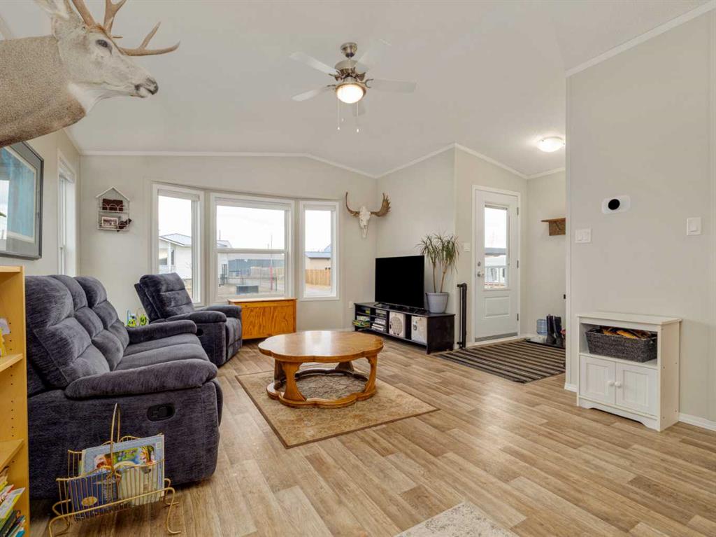 Welcome to this beautifully maintained 2018 manufactured home in the charming community of Cowley. Offering 1,250 sq ft of thoughtfully designed living space, this well-laid-out home features 2 bedrooms and 2 full bathrooms, providing comfort, functionality, and easy living.