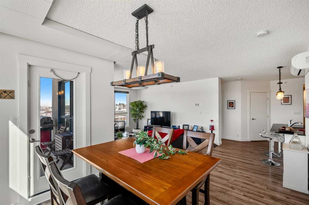 Welcome to this beautifully upgraded 2-bedroom, 2-bathroom, 1 Indoor parking stall - corner unit in the sought-after London at Heritage Station. Located on the 6 floor on the northwest corner you will get the beauty of Alberta sunsets, mountain views and Calgary’s downtown views. With 10-foot ceilings, full of windows this home offers a rare blend of space, light!! Fully upgraded this unit is move in ready with bright on-trend paint, stunning tile with a rich laminate floor. Other renos included, stunning painted white cabinets in the kitchen and bathroom, newer light fixtures through out the entire unit, newer paint for doors, baseboards and walls, newer Tankless hot water boiler, all new vinyl windows in 2025 — all in a concrete building with unbeatable access to amenities. This bright corner suite features windows facing north and west and unlike most has AC for our hot summer days!! The open-concept layout has all the spaces you desire; the kitchen has been thoughtfully updated including new black hardware for the cabinets to accent the black granite. Comfort and style continue throughout the home with custom blinds in the bedrooms, living and dining room. The front entry allows for a desk space if desired or a added space for your favorite shoe collections. The primary bedroom has room for a king sized bed if you want it, a large closet, with a lovely 4 pc ensuite. With the other bedroom on the opposite side of the unit its spacious giving everyone occupant privacy. The unit also includes a newer house sized stacked washer and dryer. Step outside onto your balcony, perfect for enjoying morning coffee or evening sunsets with open sky views and great airflow from the corner positioning on the NW side. One of the biggest highlights of living at London at Heritage Station is the direct indoor access to shopping and services — no need to step outside to grab groceries, coffee, or daily essentials. Plus, you’re just steps to the C-Train station, making downtown commutes and city access effortless. There is a rooftop garden and outdoor terrace on the 17th floor and a pet relief area ,so no need to walk for ages in winter. Modern upgrades, generous storage, premium parking, and unmatched convenience — this is condo living at its best. Pet dog, cat, or bird allowed with approval - The building has a dog run area on the north side of the building!