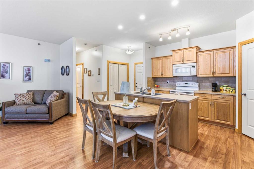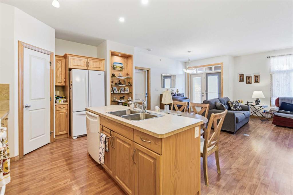 Simplify Your Life in Style – Luxury Adult Living in Red Deer! Welcome to one of the most luxurious/ Elite condo residences in Red Deer, offering the ultimate lock-and-leave lifestyle for downsizers, professionals and snowbirds seeking freedom without compromise. Located on the 4th floor, this beautifully appointed 2-bedroom, 2-bathroom condo delivers upscale comfort, security and stunning north-west views. Step inside and experience a bright, open-concept floor plan designed for effortless living and entertaining. The spacious living and dining areas flow seamlessly into a fantastic kitchen featuring a functional island, sleek appliances, large walk in pantry and a built-in display that adds both charm and practicality. Whether hosting friends or enjoying a quiet evening at home, this layout offers the perfect balance of style and function. The thoughtful design includes two generously sized bedrooms. The private Primary Suite features a large walk-in closet and a luxurious 4-piece ensuite, creating a peaceful retreat at the end of the day. The second bedroom is ideal for guests, a home office, or hobby space, conveniently located near the second 4-piece bathroom. In-unit laundry/storage adds everyday convenience. Step outside onto your north west facing balcony cool in the hot summer days - generously sized and finished with clear glass panels to preserve your beautiful views while allowing natural light to pour in. It’s the perfect place for morning coffee or evening relaxation. This secure, adult-only building offers exceptional amenities including:• Elevator access• Fitness centre (gym)• Party room• Guest suite for visiting family and friends• Entertaining nooks• Beautiful courtyard• Secure entry and mail area• Visitor parking at the front Enjoy absolute peace of mind with titled underground parking and a separate storage room - valued at approximately $11,000 - providing additional space for seasonal items and added long-term value. Travel often and worry never, knowing your vehicle and belongings are safe and protected. Comprehensive condo fees simplify your budgeting by covering heat, water, sewer, garbage, professional management and all exterior maintenance. No more snow shoveling or lawn care - just effortless upscale living. Located in North Red Deer, you’re just minutes from shopping, medical services, banking and everyday essentials, making this an incredibly convenient and desirable location. As an added bonus, the seller is willing to include the piano and select pieces of furniture if the buyer wishes - making this move-in ready opportunity even more attractive. If you’re looking to downsize without sacrificing luxury, security, or lifestyle, this 4th-floor condo with titled underground parking, 2 bedrooms, 2 bathrooms and premium amenities is truly a rare find. $5000 was deducted of the price for flooring. Effortless. Secure. Upscale.Welcome home.