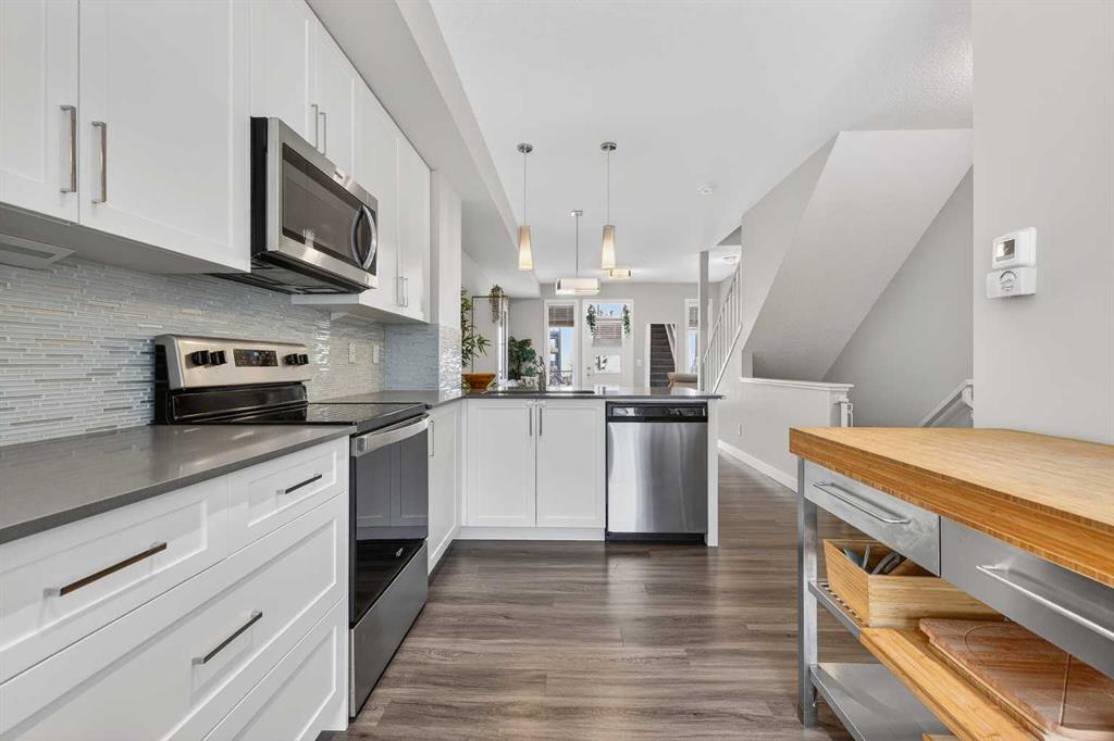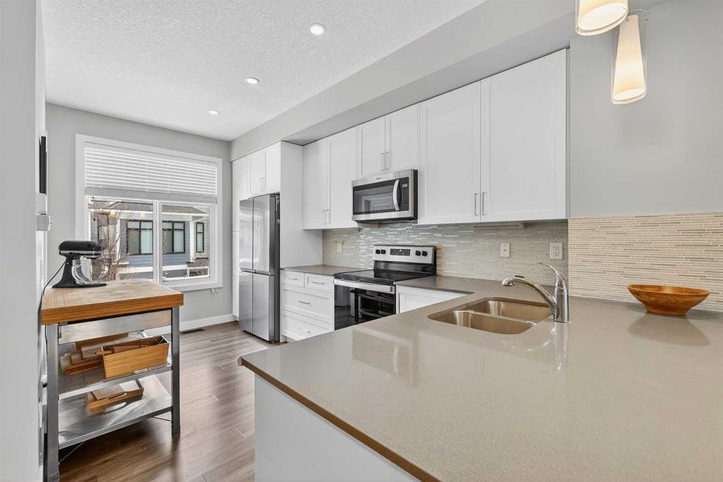 QUICK POSSESSION | DUAL PRIMARY SUITES | INDOOR PARKING – PLUS MAIN FLOOR DEN This trendy and spacious air-conditioned three-storey townhome in the desirable community of Seton offers outstanding value, a stylish modern design, and a convenient location close to transit, shopping, schools, walking paths, green spaces, dog parks, YMCA and more. Designed for both comfort and functionality, this home is ideal for professionals, families, or investors looking for low-maintenance living in a vibrant urban setting. The entry-level welcomes you with a large front foyer, a versatile hobby room or home office, extra storage space, and convenient access to the attached garage. The upper main level features an open-concept living space with luxury vinyl plank flooring and abundant natural light, creating a warm and inviting atmosphere. The spacious living room flows seamlessly into the well-appointed kitchen and dining area, making this home perfect for relaxing evenings or entertaining guests. The kitchen is a true standout, featuring white shaker-style cabinetry, quartz countertops, a stunning tile backsplash, upgraded stainless steel appliances, and a dramatic peninsula island with a flush eating bar and undermount sink. Just off the front living area, a sizeable west-facing balcony offers the ideal space for outdoor enjoyment with a covered BBQ area and peaceful mountain views. Upstairs, the home continues to impress with two generously sized primary bedrooms with private en-suites, a laundry closet with a stacked washer and dryer. The main primary suite is thoughtfully designed and includes a large walk-in closet and a luxurious private ensuite featuring quartz countertops and a glass-enclosed walk-in shower. This beautiful home combines contemporary aesthetics with everyday practicality, showcasing a modern décor palette, smart layout, and quality finishings throughout. With low-maintenance living, thoughtful upgrades, and unbeatable convenience, this property offers a fantastic opportunity to move into a vibrant and growing community. Seton is more than a neighbourhood—it’s a lifestyle. Live healthy and connected in a thriving, walkable community where you’re minutes from the South Health Campus, the world’s largest YMCA, green spaces, transit, and the upcoming LRT extension. Whether you\'re commuting, working remotely, or enjoying your downtime, Seton offers it all. A spring 2026 possession date is available—don’t miss your chance to make this stylish townhome your own. Contact your friendly REALTOR® today to arrange your private showing and experience all that this home and Seton have to offer!