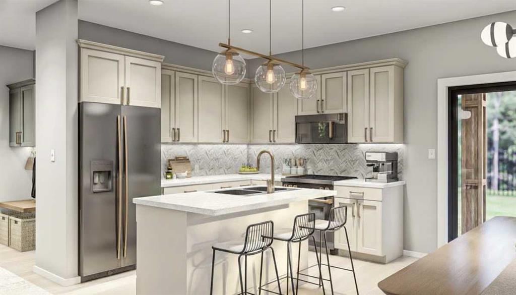 Experience refined bungalow living in the heart of Diamond Ridge. Situated on Lot 41 at 312 John Avenue SW in Diamond Valley, this brand-new Callahan 2 custom home offers thoughtfully designed single-level living with modern finishes and exceptional functionality. This detached bungalow features 1,368.2 sq. ft., 2 bedrooms, and 2 full bathrooms, along with an unfinished basement providing excellent opportunity for future development. The layout is both open and intentional, creating a seamless flow between the kitchen, dining, and living areas—ideal for everyday comfort and entertaining. The living room is anchored by a sleek electric fireplace, creating a warm focal point for the home. Buyers have the option to incorporate a sloped ceiling for added architectural interest. The kitchen is designed for both beauty and efficiency, featuring a large island with breakfast bar, stone countertops, soft-close cabinetry, a pantry for additional storage, and a premium LG appliance package. Privately positioned toward the rear of the home, the primary bedroom serves as a true retreat, complete with 10’ ceilings that enhance the sense of space and light. The spa-inspired five-piece ensuite includes a soaking tub, separate shower, double-sink vanity, private toilet room, and a spacious walk-in closet. A second bedroom is located near the front of the home and is served by a well-appointed three-piece hallway bathroom, offering flexibility for guests or a home office. The mudroom is thoughtfully designed with built-in cabinetry and a stacked washer and dryer, providing practical organization and everyday convenience. Additional highlights include 9’ ceilings throughout the remainder of the main floor, a welcoming front porch, and a double front-facing attached garage. Optional upgrades include a rear deck and/or BBQ deck to enhance outdoor living, deck entrance from primary, and/or alternate front entrance. Located in the thoughtfully planned community of Diamond Ridge, residents enjoy convenient access to local shops, cafés, schools, parks, pathways, and the nearby Sheep River and regional trail systems. Easy connections to Okotoks and south Calgary offer the perfect balance of small-town charm and accessibility. Estimated completion is scheduled for Summer 2026. Photos contain rendered examples.