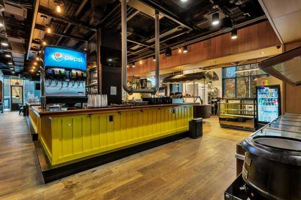 This fully built-out premises features extensive leasehold improvements and significant operational infrastructure already in place. The thoughtfully designed layout includes a large commercial kitchen, walk-in cooler and freezer, dedicated keg and beverage storage room, centralized servery, multiple customer washrooms, and abundant back-of-house storage areas supporting efficient high-volume operations.