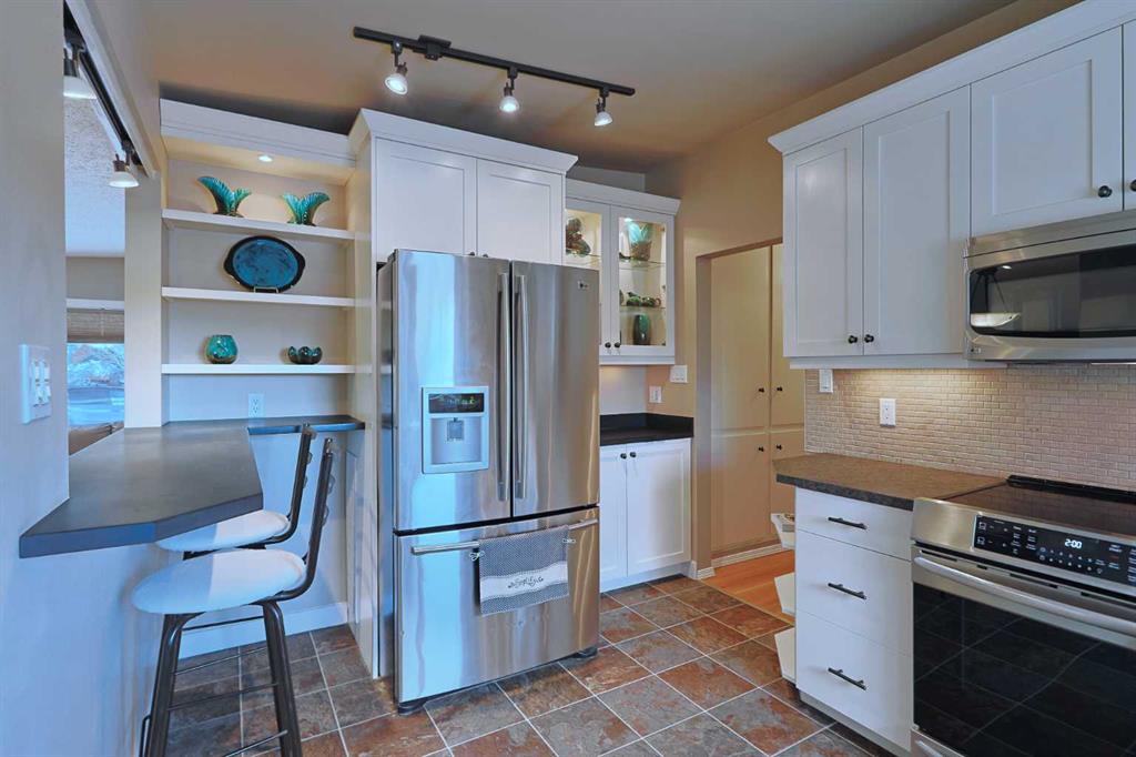 First-time offered in over 25 years is this beautifully updated family bungalow here in the popular Northwest Calgary community of Brentwood. Total of 4 bedrooms in this fully finished Medallion home, which has hardwood & vinyl floors, 2 bathrooms, oversized 2 car garage, renovated kitchen with stainless steel appliances, big fenced backyard with covered deck & a host of improvements include electrical panel, windows, hot water tank & garage roof. Ready & waiting for a new family to call it their own, the hardwood floors flow from the wonderful living room with its remote-controlled gas fireplace accented by BC-imported stone surround & into the spacious & airy open concept dining room. The updated sunny kitchen has undercabinet lighting & built-in eating bar, vinyl floors & tile backsplash, large pantry & the stainless steel appliances include a Bosch dishwasher & Frigidaire induction stove/convection oven. The hardwood floors continue into the 3 main floor bedrooms…all with great closet space & 1 bedroom has access onto the covered backyard deck. Renovated in 2016, the main floor full bathroom has a sleek bathtub/shower with full tile surround & vinyl floors. Developed in 2015, the beautiful basement has a huge 4th bedroom with 2 closets, laundry room with Whirlpool washer & dryer, bathroom with shower, loads of storage space & a fantastic recreation room. The professionally xeriscaped front yard is a gorgeous garden oasis...water-efficient & sustainable designed to reduce (or even eliminate) the need for watering, thereby reducing water usage. The Southwest-facing backyard is fully fenced & is a \"blank slate\" with extensive space for gardening & oversized detached 2 car garage with new garage door (2019) & roof (2020). Among the additional improvements since 2009: kitchen reno, hot water tank, 200amp electrical panel (2014), windows & doors (2013-2019), sump pump/weeping tile (2014-2015), low-flow/dual-flush toilets, solar tubes (in the rec room & main floor middle bedroom) & front security screen door. Prime location close to all of Brentwood’s schools (Simon Fraser, Sir Winston Churchill, St. Jean Brebeuf, Captain John Palliser, St. Luke & Brentwood), shopping at the revitalized Northland retail centre (Walmart, Winners, Best Buy, auto, restaurants & services), Nose Hill Library & bus stops. And the easy access to Crowchild Trail & John Laurie Blvd means you’re only minutes to Nose Hill Park, major retail centers, University of Calgary & hospitals (Foothills, Alberta Children\'s & Cancer Centre), recreation & downtown.