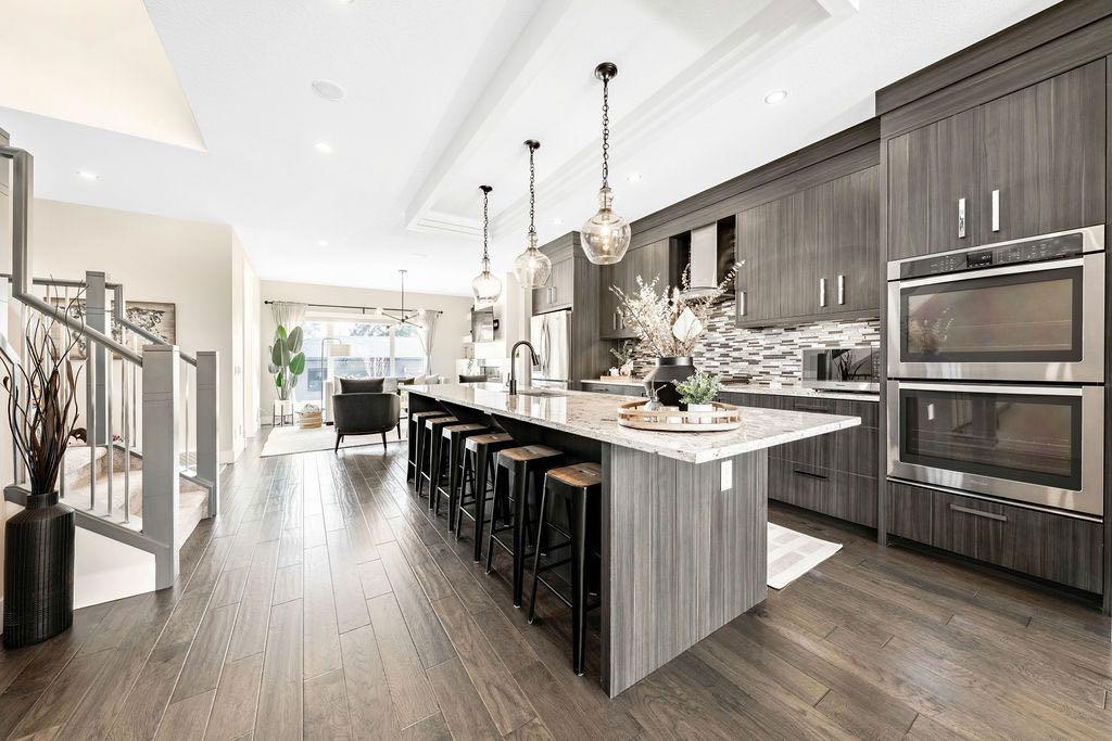 Refined Living, Inner-City! Nestled in the thriving district of Rosscarrock, this meticulously maintained, contemporary two-storey home offers over 3,000 sq. ft. of thoughtfully planned living space. Upon arrival, you’ll notice elevated design and tasteful inclusions. Oversized windows flood the home with natural light, creating a bright, uplifting atmosphere. The free flowing-floorpan transitions from the spacious front dining area to the gourmet kitchen. Here you’ll find high-end finishings including premium engineered hardwood flooring, smooth granite countertops, custom cabinetry, a gas range, double wall oven, Blomberg dishwasher (2025) and French Door refrigerator with in-door-ice + water and an exterior beverage drawer. The eatery flows effortlessly into the inviting family room, complete with custom built-ins, a linear gas fireplace and a practical flex area and 2 piece powered room. Ideal for relaxing and entertaining inside or out on the patio for summer BBQs with a gas hookup in your fully landscaped, private, fenced back yard this home is comfortable through all seasons. The upper level is well appointed with soaring vaulted ceilings that give the stunning primary bedroom a truly upscale feel, complete with a luxurious 5-piece ensuite boasting a stand alone soaker tub, dual vanity and rainfall shower. Two more sizeable bedrooms, and an additional 4-piece bathroom, a dedicated upper level laundry room featuring granite countertops, custom cabinetry and a sink complete the upper level. A highly practical, thoughtfully laid out, fully developed lower level, open to the floor above, continues to impress with 9-foot ceilings, a spacious fourth bedroom, full 4-piece bathroom, a new 50 gallon hot water tank (2025), additional built-ins, including a wet bar and a spacious entertainment room have fully finished this basement. Throughout the home, you’ll appreciate elegant inclusions and attention to detail, with: