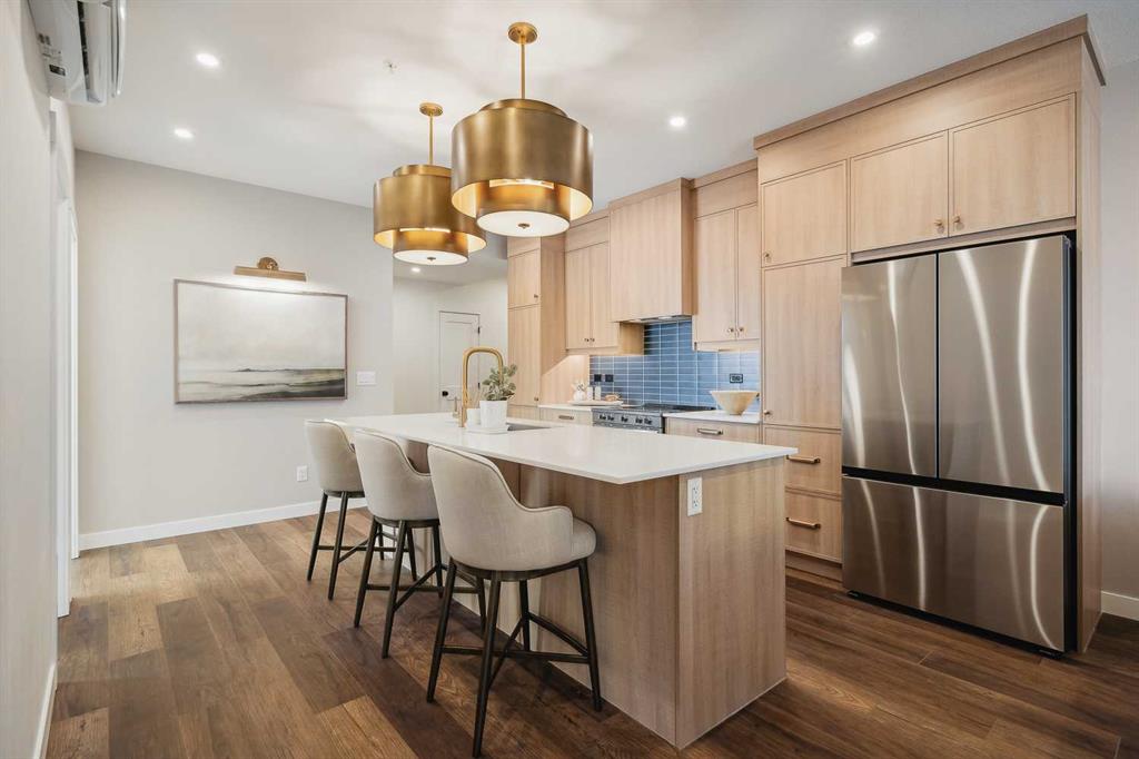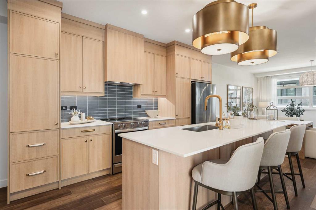 Logel Homes proudly presents the award-winning floor plan, The Atwood 3. Thoughtfully designed with both style and functionality in mind, this professionally curated interior offers premium finishes and modern comfort throughout. Features include air conditioning, 41” upper cabinetry with soft-close doors and drawers, luxury vinyl plank flooring, designer tile accents, stainless steel appliances, and contemporary pot lighting. An expansive 8-foot-wide patio door enhances natural light and indoor-outdoor flow, while a dedicated storage locker and titled parking stall provide everyday convenience.