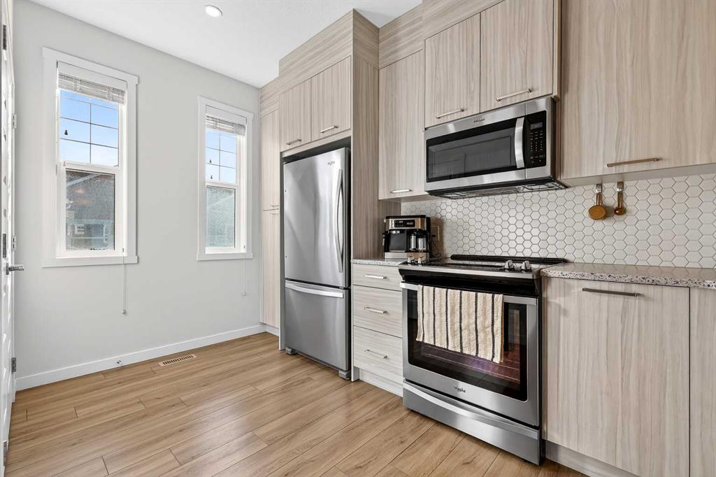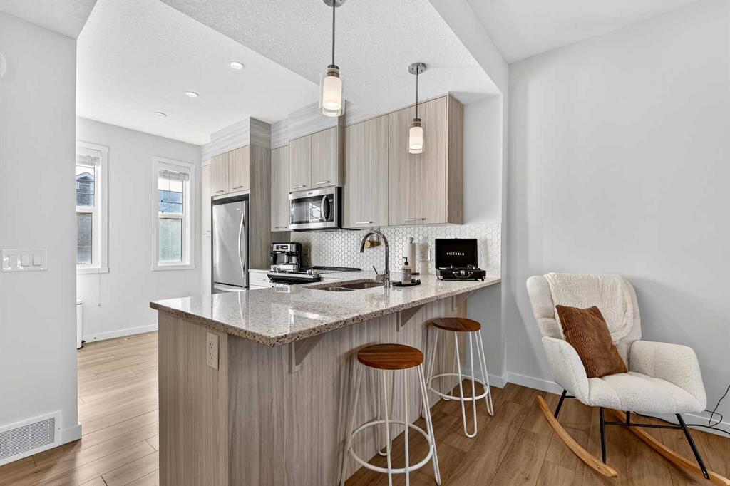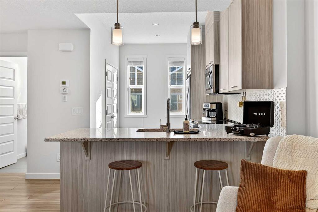 2 Beds | 2.5 Baths | 1,407 Sq. Ft. | Tandem Double Garage | Greenspace Views! Located in the desirable Canals community, this bright and thoughtfully designed townhome offers 1,407 sq. ft. of functional living space with a rare double tandem garage. The open-concept main level is filled with natural light and showcases upgraded fixtures, modern finishes, and a seamless flow to the covered balcony overlooking greenspace. Upstairs, you’ll find two spacious bedrooms, including a primary retreat complete with a large walk-in closet and a double vanity ensuite. The layout is efficient, practical, and ideal for professionals, couples, or small families seeking low-maintenance living without sacrificing space. Enjoy the convenience of condo living paired with the feel of a well-designed home in one of Airdrie’s most sought-after neighborhoods.