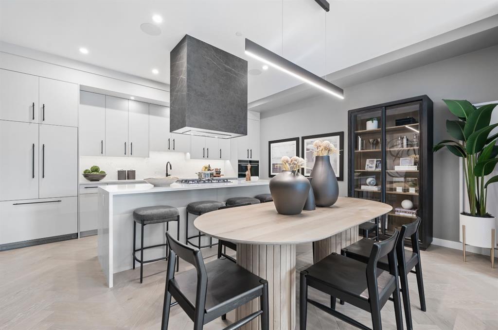 Welcome to an extraordinary living experience at Parkside in Calgary’s vibrant West District. This meticulously crafted luxury condo blends elegance, comfort, and style, offering 2 spacious bedrooms and 2.5 beautifully designed bathrooms. Located at Parkside, this residence is perfect for the most discerning buyers. Built by TRUMAN, the three-storey concrete building defines upscale living and is complemented by premium amenities that elevate everyday life. From the moment you enter, the exceptional craftsmanship and attention to detail are evident. Custom cabinetry, stunning Chevron flooring, and a curated lighting package create a sophisticated and inviting atmosphere. Expansive floor-to-ceiling windows flood the space with natural light, providing sweeping views of the surrounding neighborhood. The living room, complete with a built-in fireplace, offers a warm and elegant setting for both intimate gatherings and relaxed evenings at home. At the heart of the home is the chef’s kitchen, where luxury meets practicality. Full-height custom cabinetry and a gas cooktop blend style and functionality, while a striking quartz island with an elegant range hood serves as the centerpiece. Thoughtful touches, like a panelled fridge, under-cabinet lighting, and opulent quartz countertops—including a spacious double waterfall island—enhance the space and transform everyday cooking into a gourmet experience. The owner’s suite serves as a personal retreat, offering a sanctuary to unwind. The ensuite bathroom, designed for relaxation, rivals the finest spas. A luxurious tiled shower, freestanding soaker tub, and dual vanity sinks create a serene environment that turns your daily routine into an indulgent escape. Designed with a sense of community in mind, the building’s common areas foster connection and engagement. Residents enjoy access to a rooftop event patio, an owner’s lounge with an entertainment kitchen, and a fully equipped on-site gym, all with breathtaking views of West District’s Central Park. These spaces are perfect for relaxation, fitness, and socializing, providing the ideal balance of privacy and community. Nestled in Calgary’s newest southwest community, this condo offers a boutique living experience that combines the best of luxury with the excitement and convenience of West District. With its exceptional design, exclusive amenities, this residence is more than just a home—it represents a lifestyle choice for those who demand the very best.