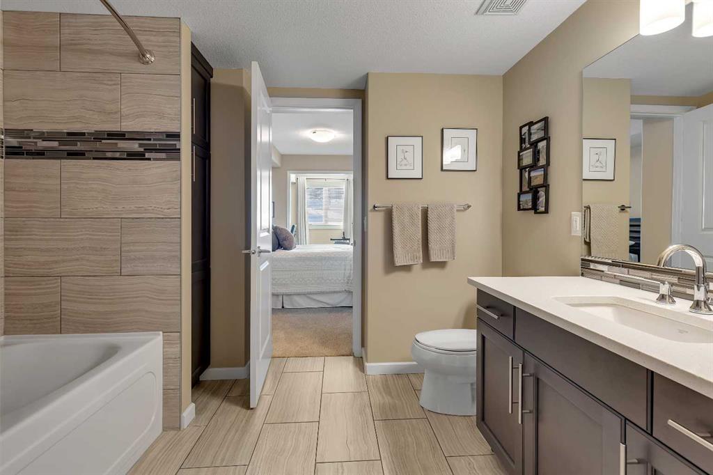 Stunning 1145 sq. Ft apartment, 2 heated underground titled parking stalls, 2 Bedrooms + Den, Corner End-Unit in the Luxurious Adult (18+) Complex of Kincora Summit. This Elegant Condo offers spacious open concept w/ In-Floor Heating, A/C & designer touches throughout, custom built in shelves in pantry, laundry & storage closets, living Room with Access to private covered balcony, gourmet kitchen w/ Quartz Counters & upgraded extended cabinets, Island, top of the line Stainless Steel Appliances & Tiled Floors, Master Quarter with Walk-through Closet & 3 pc Ensuite, Second Bedroom & Large Den with built in custom cabinets, 4 pc Main Bath, Convenient In-Suite Laundry, Titled Storage Locker on the Same Floor next to Elevator & Secure Titled Underground Parking Stalls. Well, Maintained Complex w/ Ample Visitor Parking. Walking Distance to Walmart, T&T Market, McDonalds and a variety of other restaurants and services. Also close to green spaces, bus & all other amenities. Easy access to Stoney Trail, Airport & University of Calgary. This unit shows pride of ownership. Click on link to view 360 tour.