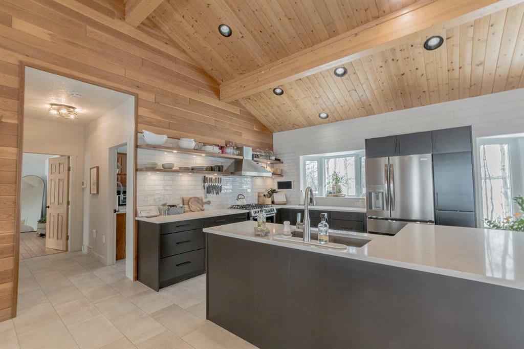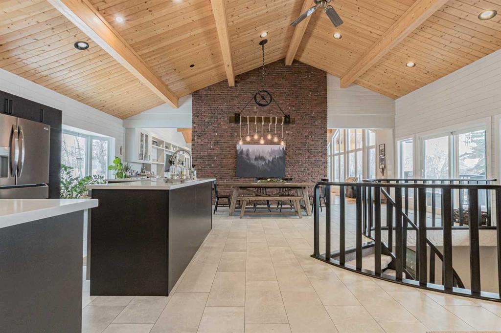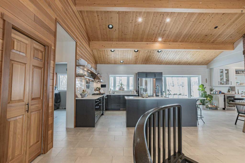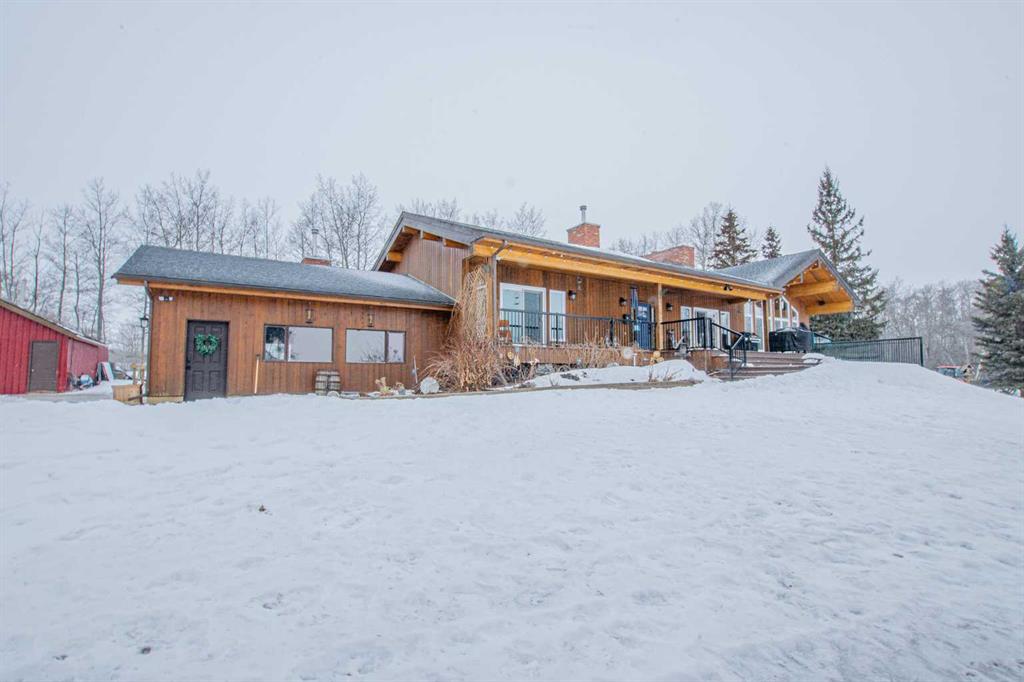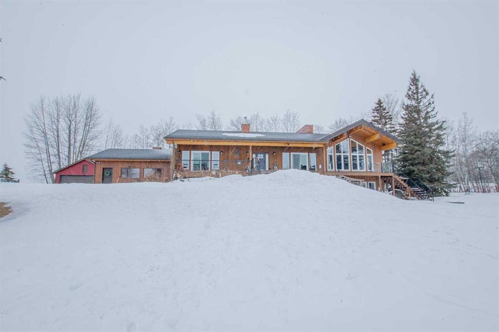 Nestled just three minutes from Grande Prairie City limits, this stunning bungalow offers a rare lakeside lifestyle on beautiful Flyingshot Lake. With over 2,100 sq ft of thoughtfully renovated living space and expansive water frontage, this property is the perfect blend of luxury, comfort, and outdoor adventure. Whether it’s outdoor activities, having your horses nearby or simply enjoying peaceful lakeside walks, this property is designed for year-round enjoyment. Inside, the home showcases a seamless fusion of modern elegance and rustic charm. The open-concept main floor features a gorgeous living room with windows overlooking the lake views, custom cabinetry, a spacious kitchen with walk-in butler’s pantry, main floor laundry and striking brick wood-burning fireplaces that creates a warm, inviting atmosphere. The conveniently located primary bedroom has private patio door access and an ensuite that is a true retreat, complete with double sinks, a custom walk-in shower, and a luxurious soaker tub. The fully developed walkout basement expands your living space with a large walk-out family room, custom home gym, and a spacious cold room. With two great sized additional bedrooms and another full bath, there’s plenty of room for family and guests. The exterior is just as impressive, with cedar siding, exposed aggregate, and a large front deck perfect for entertaining or relaxing while taking in the lake views. Recent upgrades include new shingles, all new windows and an updated septic system. A detached workshop + barn & shed provide exceptional storage and functionality, while fiber optic internet ensures you stay connected without compromise. This is more than a home—it’s a lifestyle where comfort meets nature.