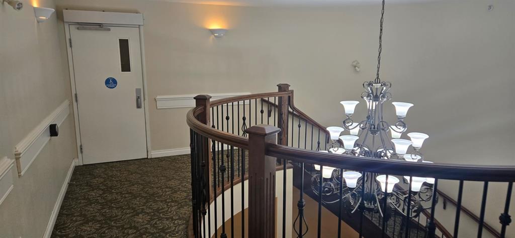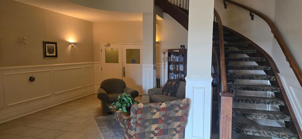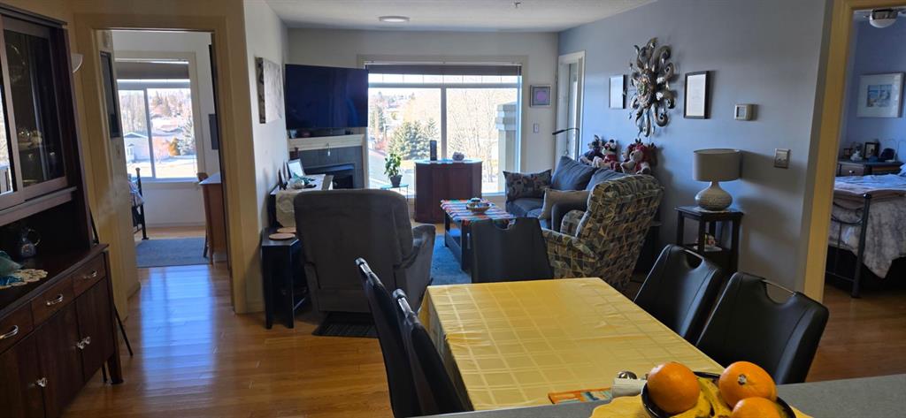 Come and check out this executive style condo that has been beautifully updated in the sought after Chateau Lacombe! Close to all of Lacombe\'s downtown amenities . This top floor west facing unit has 2 generous bedrooms , 2 bathrooms and adequate laundry room with awesome storage space. The open-concept layout showcases lovely hardwood flooring in the living room and tile in the kitchen. The bright and inviting kitchen offers an island and an abundance of cabinetry,& flowing seamlessly into the spacious living and dining areas complete with black out blinds included, as well with a great view to the west and panoramic view of those stunning Alberta sunsets . Patio door with retractable door screen leads to oversized balcony with a retractable awning that if forgotten about puts itself away! WOWZERS!! A private spot to relax on a summers evening to catch some sun and enjoy the views . The master bedroom has a large ensuite with shower plus huge walk in closet with custom Canadian Closet built ins with enough room for comfort and organization for everyone .There is also a common social room for visiting neighbours, hosting parties or playing cards or host a private function. This very well kept unit offers everything you need including titled underground parking so you never have to worry about parking in the outside elements . Across the parking lot or the street they have coffee until the cows come home with A&W and McDonalds close enough so you never have to drive if you so choose to. A gem waiting to be discovered for the discreet home Buyer in today\'s market.