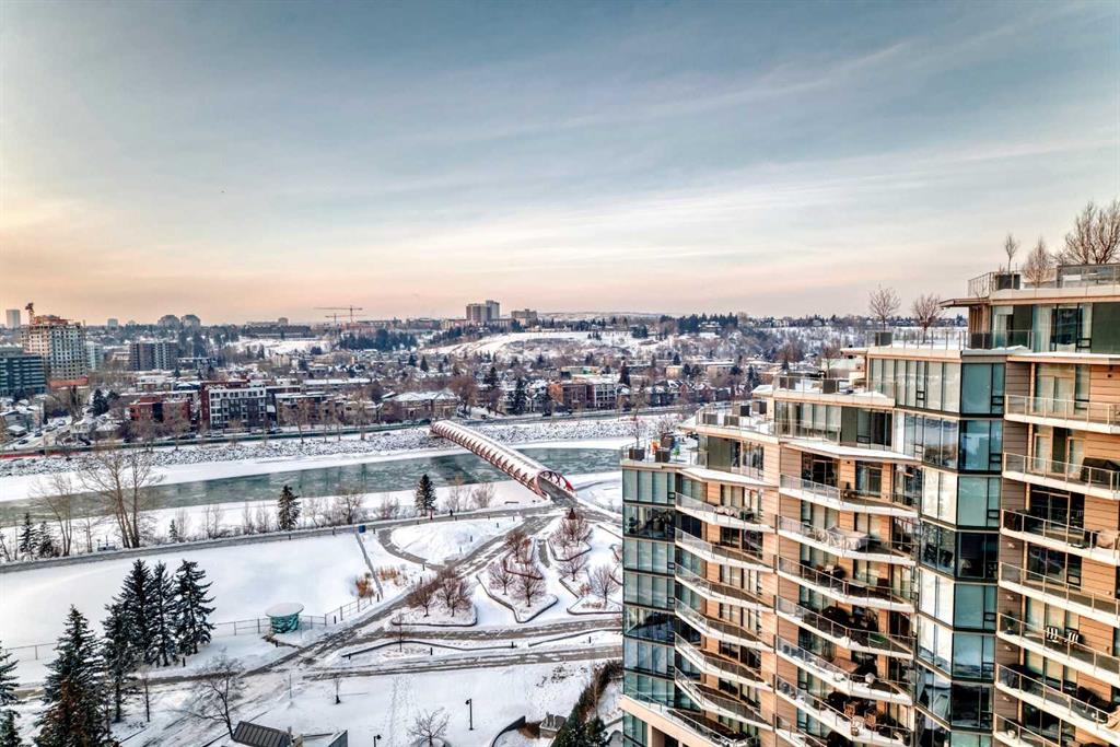 VACANT UNIT, CLEAN AND READY FOR QUICK POSSESSION! This brand-new 2-bedroom, 2-bathroom condo in First & Park by Graywood Developments is the perfect hands-off investment opportunity in one of Calgary’s most desirable neighbourhoods. Currently leased, the unit offers immediate rental income and long-term upside in a location with consistently strong tenant demand. Perched on the 13th floor, the condo features panoramic views of the Bow River, Peace Bridge, and downtown skyline — a true highlight that sets it apart in the market. The open-concept layout includes 9-foot ceilings, floor-to-ceiling windows, and stylish vinyl plank flooring. A modern kitchen is outfitted with Fulgor stainless steel appliances, a gas cooktop, and quartz countertops. The primary suite comes with a walk-through closet and ensuite bath, complemented by a second bedroom and full bathroom for added flexibility. Residents enjoy private balconies, in-unit laundry, air conditioning, and premium building amenities such as a fitness centre, lounge, meeting room, visitor parking, bike storage, and daytime concierge. Located steps from Prince’s Island Park, the Bow River pathways, downtown offices, and Calgary’s best dining, this property combines lifestyle appeal with rental stability. Whether you’re seeking steady cash flow or long-term appreciation, this unit checks all the boxes.