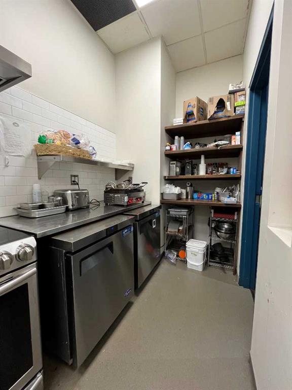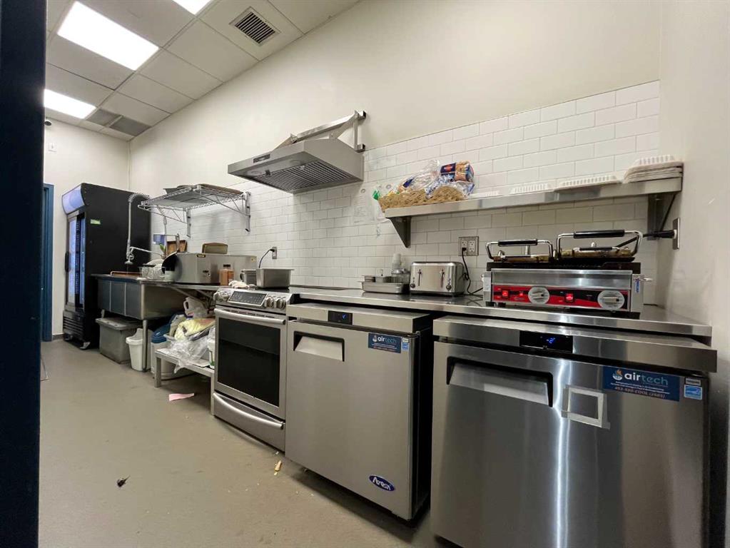 Prime ±1,100 SF café opportunity located in Gaslight Plaza in the heart of historic downtown Medicine Hat’s central business district, benefiting from strong weekday daytime traffic within an owner-occupied professional building anchored by EBT Chartered Professional Accountants and over 100 on-site employees. Positioned within the city’s core commercial and professional hub, the space is ideally suited for a café, grab-and-go food operator, or boutique beverage concept seeking a compact, high-visibility location with an established customer base. Existing café equipment is available for tenant use, including an espresso machine, display case, commercial table-top pizza oven, stove, slush machine, panini presses, multiple coolers and freezers, bean grinders, and assorted tables and chairs, creating an attractive turnkey leasing opportunity in a well-established downtown setting.