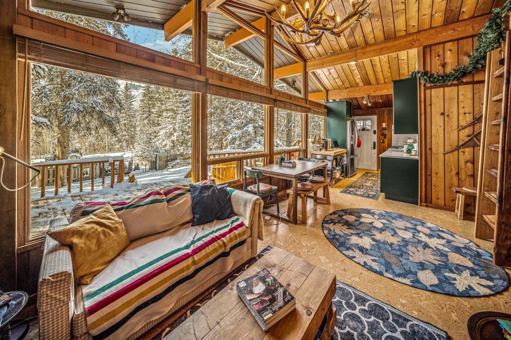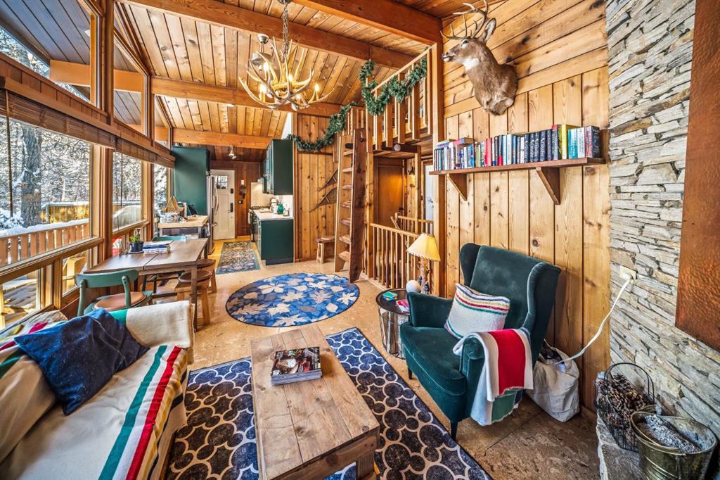 Tucked quietly into the trees at 126 Elk Street, this Harvie Heights cabin is a study in alpine nostalgia—an original mountain retreat thoughtfully reimagined for modern life. The architecture remains grounded in its roots, where timber, texture, and proportion speak to a slower, more deliberate way of living, while carefully executed updates bring comfort and ease.