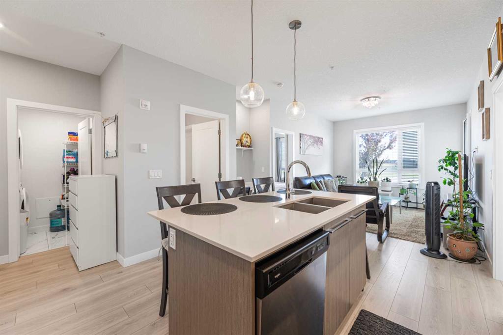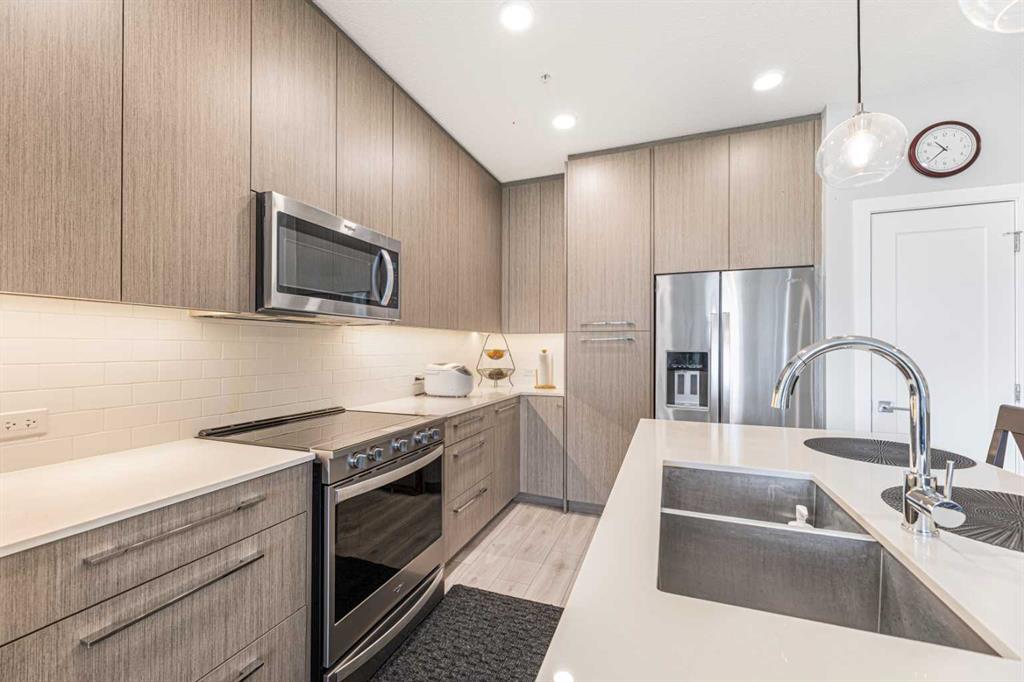 Welcome to this pristine 2 bedroom, 2 bathroom corner apartment that comes with titled underground parking. This unit is one of the largest plans in the complex and is very sought after! As you enter, you\'ll notice the meticulous care the current owner has invested to maintain its new condition. Situated on the main floor, it offers the quietude of having no adjacent neighbors. The kitchen boasts floor-to-ceiling cabinetry, providing ample storage and a large island with eating area. The stainless steel appliances are in like-new, undamaged condition and the stove was recently upgraded. Luxury Vinyl Plank flooring and ceramic tiles grace the bath and laundry areas. The living room is welcoming with with an upgraded balcony sliding screen door for bug free enjoyment. The laundry room offers additional storage, and the machines are well-maintained. The complex is an oasis featuring a garden area for those who enjoy growing their own vegetables. There is party room for events, a theater room in building 2000, and a full gym, spin and yoga studios, and a pet spa in building 1000. Ample visitor parking is available. The building is Air BnB friendly for those looking to use for short term rental. Ensure you don\'t miss out on this exquisite apartment – book your viewing today!