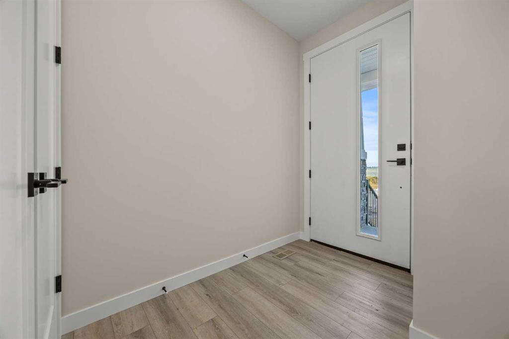 The main floor features an inviting open-concept layout with soaring 9’ ceilings and 8’ doors, creating a spacious and grand feel. As you enter, you’re welcomed by a large 8’ front door with a built-in glass window, setting the tone for the luxury inside. The front of the home includes a convenient half bath, access to your basement, and beautifully finished stairs leading down to the undeveloped basement. This home also includes a side entrance for added flexibility.