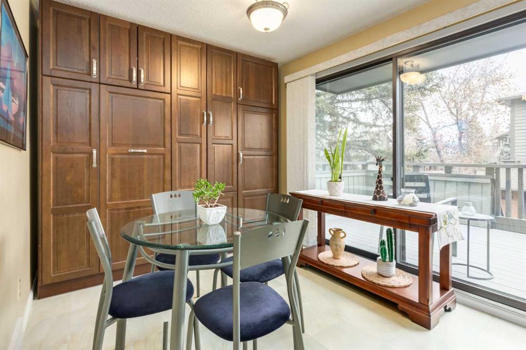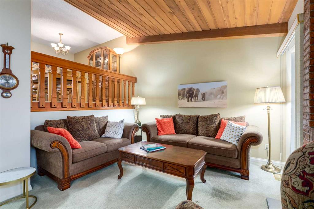 Welcome to Oakwood Lane located in the community of Oakridge. This beautiful corner 4 level split townhouse with no neighbors behind features a main floor with carpet and updated laminate flooring throughout. Large living room with gorgeous vaulted wood ceilings, wood fireplace surrounded by brick giving off a cozy ambiance and access to a west facing concrete patio and private yard. Updated kitchen with granite countertops, elegant mocha cabinets and pantry. Breakfast nook with built in cabinetry and access to a large deck. Large dining room with open to below of the living room and 2pc bathroom. The upper level features the primary bedroom with plenty of closet space and 2pc ensuite. Two other good sized bedrooms and full 4pc bathroom. The basement is fully finished with a recreation room and large under level storage. Main entry storage and laundry room and double attached garage with a gas heater and a small driveway. Just minutes from Glenmore reservoir, shopping, schools, restaurants and walking paths. Easy access to Stoney Trail, Costco and Rockyview Hospital. This is a must see unit. Don’t miss out on this opportunity. Make your private showing today.