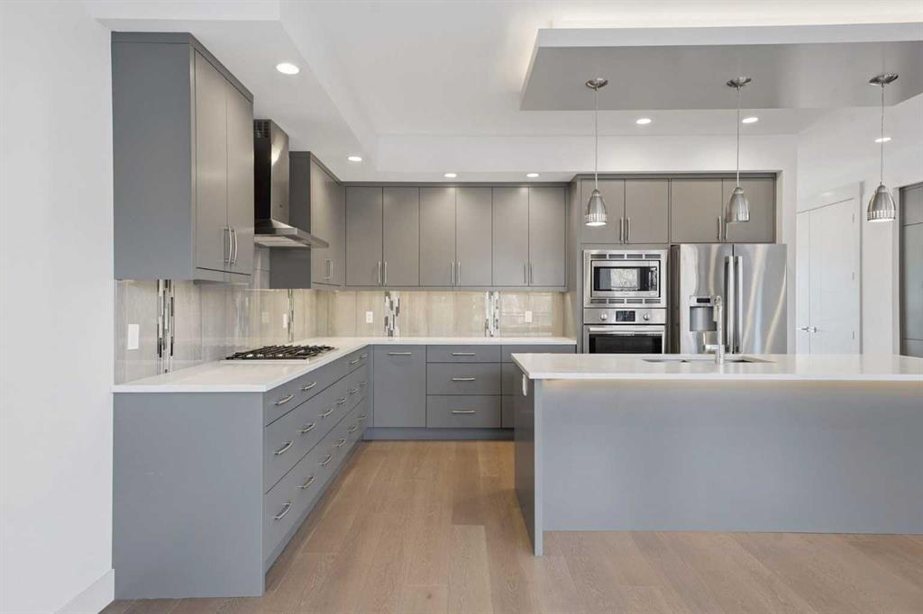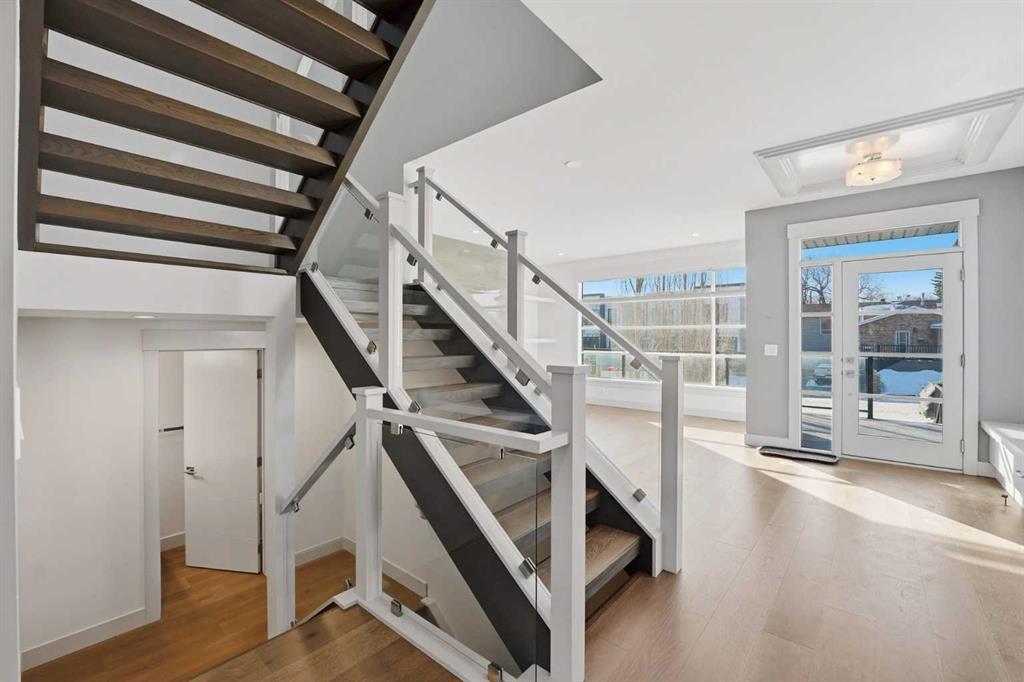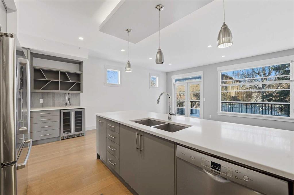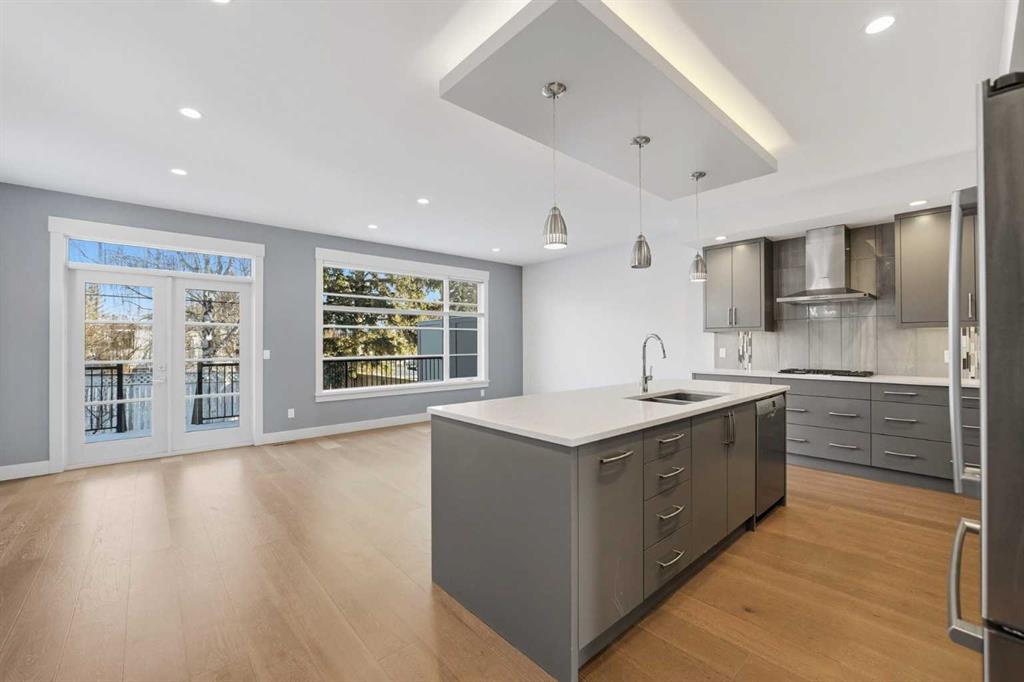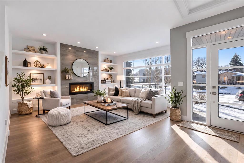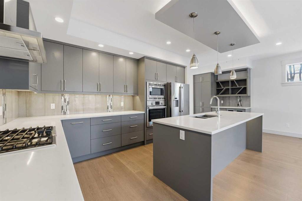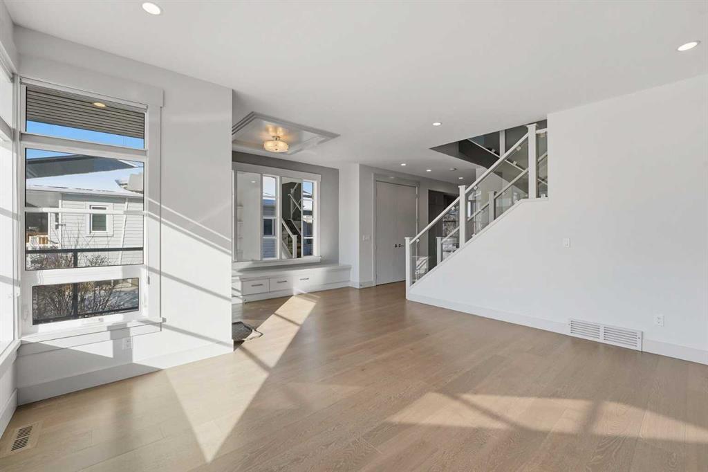 Beautifully designed semi-detached home in Shaganappi, offering quick access to downtown via Bow Trail, 17th Avenue, and the Shaganappi LRT. Featuring 3 bedrooms and 3.5 bathrooms, this home offers over 2,265 sq ft of professionally designed living space with an open-concept layout, oversized windows, and multiple skylights that create an exceptionally bright, airy atmosphere. The main level showcases engineered hardwood flooring and a thoughtfully designed staircase with a generous landing. The chef-inspired kitchen includes a large island, stainless steel appliances, gas range, built-in wall oven and microwave — ideal for both everyday living and entertaining. Upstairs, you’ll find 3 spacious bedrooms including a generous primary suite with walk-in closet and ensuite. A full bathroom, convenient upper-level laundry, and a bright flex space complete the level. The fully finished basement offers a large family room and an additional full bathroom — perfect for guests, media, or recreation. Additional highlights include: