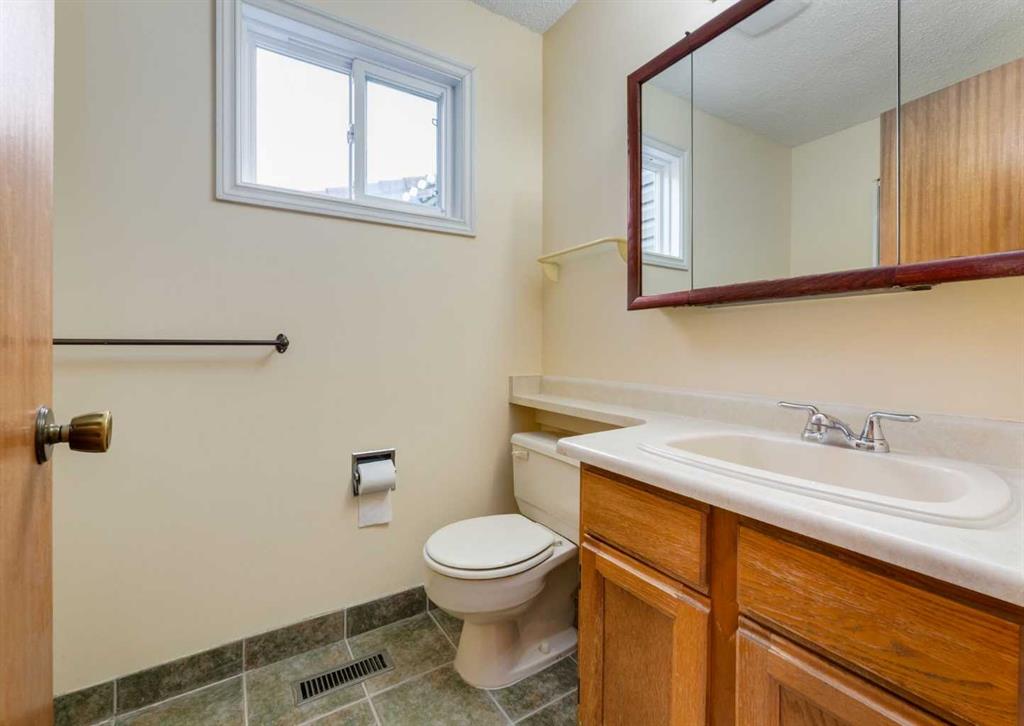 Situated directly across from Nose Hill Park and backing onto a tranquil ravine, this rare four-level split offers an exceptional blend of privacy, character, and unbeatable location. With no neighbours in front or behind, you’ll enjoy year-round views and direct access to one of Calgary’s most iconic natural spaces. Thoughtfully maintained and full of timeless architectural charm, the home welcomes you with a spacious foyer leading to a bright living and dining area featuring laminate flooring, a classic wet bar, custom built-in wood bookshelves, and elegant French doors that create separation while maintaining an open feel. The kitchen retains its original cabinetry—rich with character—complemented by tile flooring and a large window overlooking the backyard and green space beyond. Upstairs, you’ll find three generous bedrooms including a spacious primary retreat complete with a walk-in closet and private 4-piece ensuite. An additional full bathroom serves the upper level.