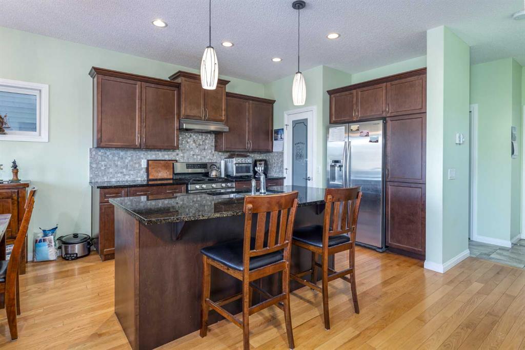 0welcome to 158 Fireside Bend. 0this house is located in the wonderful community of Fireside, a newer community with some established areas. It also hosts two different Elementary schools. One is a Public Elementary school just two blocks from this home and the other one is a Catholic Elementary School, just three blocks from this home. There is a skating rink between the two schools which also turns into a basketball court in summer. There are also smaller parks in the area as well. Close by is a commercial area with McDonalds, Tim Hortons, an Italian Restaurant, a Pharmacy and a Doctors Office, and a Gas Station, plus a few other assorted other businesses. This home is 1,605 Square feet with three bedrooms upstairs. The laundry room is also on the upper floor for convenience. The Primary bedroom is large with plenty of windows, it has vaulted ceilings and an Ensuite bathroom with Two vanities and a walk-in Shower. The main bathroom is also on the upper level and has a Tub/Shower combination. The main floor consists of a two piece bathroom, Good sized kitchen with pantry, Island with eating bar, and a Gas Stove. The Dining area is just off the Kitchen and looks over the Living room. The walls on the main floor are 9 feet high and gives the area a much larger feel. The Basement is unfinished and is ready for your own ideas. The Garage is oversized at 23\' 11 \" x 17\' 11\" and is Drywalled and insulated. The back yard has a deck to entertain and leads down to a block patio. The yard is landscaped and has a raised garden area and there is also a firepit. Just outside the back fence is a pathway that leads you back to the commercial area or to the sidewalks that lead to the schools and into other areas of the subdivision.