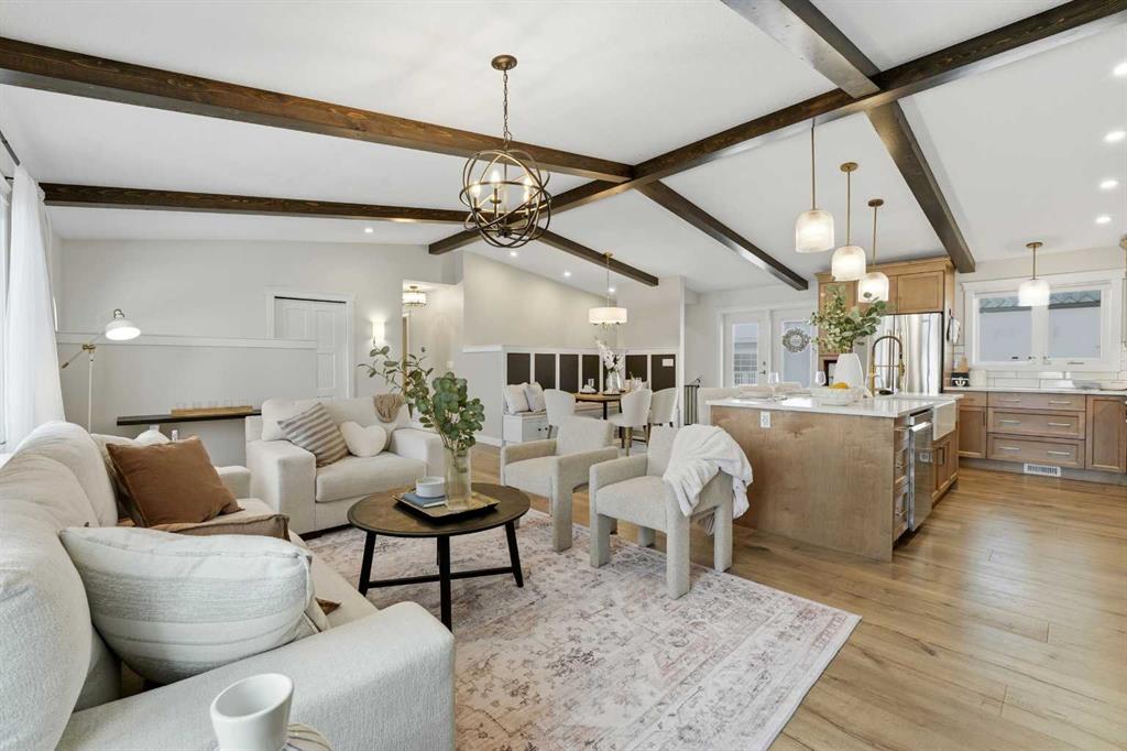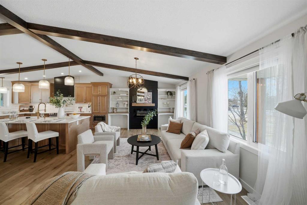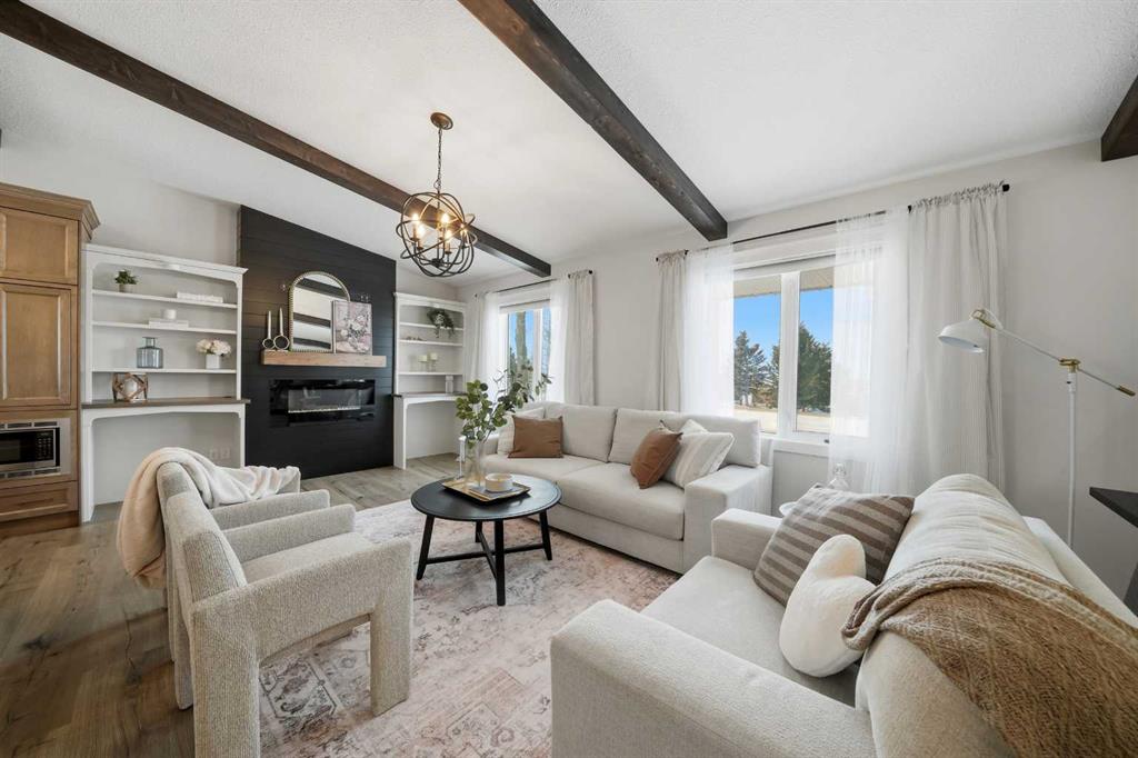 Set on a scenic acreage just 2 minutes East of Red Deer, this modernized home offers an exceptional combination of beautiful living space, outdoor amenities, and infrastructure—including a 30x40 heated shop and an attached double heated garage. The heart of the home is a recently redesigned chef-like kitchen that balances clean design with thoughtful detail. A generous island anchors the space, complemented by a pot filler, custom spice storage, integrated cutting board, and high-end appliances. Adjacent to the kitchen, the dining area features custom bench seating with concealed storage, opening naturally into a comfortable living space highlighted by a contemporary shiplap facing electric fireplace and custom mantel. Durable luxury vinyl plank flooring, refreshed paint, updated trim and doors, and modern lighting carry throughout the main floor. The primary bedroom functions as a true retreat, complete with a private ensuite showcasing heated floors, double sinks, and a large walk-in shower. Two additional bedrooms and a fully updated main bathroom complete the upper level. Downstairs offers excellent flexibility, with a wet bar off of the spacious family room warmed by a gas fireplace, two more bedrooms, and a full bathroom—making it ideal for guests or extended family. Major system improvements have already been completed, including a new septic system (2021), replacement of furnaces, hot water tank, pressure tank, and the full removal of poly-B plumbing—ensuring long-term reliability and confidence for the next owner. Central A/C & permanent Gemstone exterior lighting is an added luxury. Outdoor living is equally impressive. A covered deck with new railing overlooks the expansive fenced yard, while a 2023 hot tub provides the perfect place to unwind. For those needing serious workspace or storage, the 30x40 heated shop is fully outfitted with radiant heat, floor drains, metal walls, mezzanine storage, a commercial-grade air compressor, and an oversized overhead door. The attached 23x28 heated garage and extensive paved parking easily accommodate RVs, trailers, and heavy equipment. Additionally you will find a \"she-shed\" which is fully insulated and heated with new LED lighting. This property stands out for its quality of upgrades, exceptional utility, and peaceful setting just minutes from city amenities. A rare opportunity to secure a stunning move-in-ready acreage with spectacular year-round views, space, and infrastructure already in place. This house truly feels like a home.