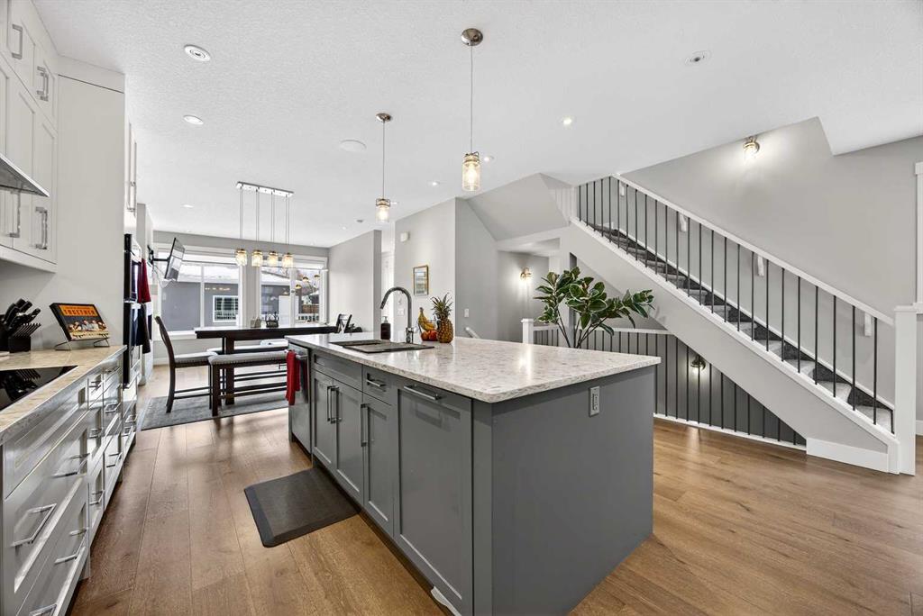 Experience refined inner-city living in this stunning 1,961 sq. ft. semi-detached home, ideally situated just steps from Confederation Park. The open-concept main floor showcases exceptional craftsmanship with 9-foot ceilings, gorgeous hardwood flooring, and a dedicated front office perfect for the modern professional. At the heart of the home, a chef-inspired kitchen features quartz counters, ceiling-height cabinetry, and a generous centre island designed for effortless entertaining. Retreat upstairs to a secluded primary suite offering a luxurious 5-piece ensuite with in-floor heating and a walkthrough closet conveniently connected to the upper-level laundry. Two additional bedrooms, laundry room connected to the primary and a full bath complete the top floor. The fully finished lower level adds a versatile family room with a stylish wet bar, surround sound and a fourth bedroom, while the private backyard features a large deck and a fully insulated double detached garage. Mount Pleasant is a vibrant community with amazing neighbors and this home is a short walk to Confederation Park and minutes to downtown, schools, recreation, shops, and dining.Amazing home in an incredible location! Call today to book your private showing!
