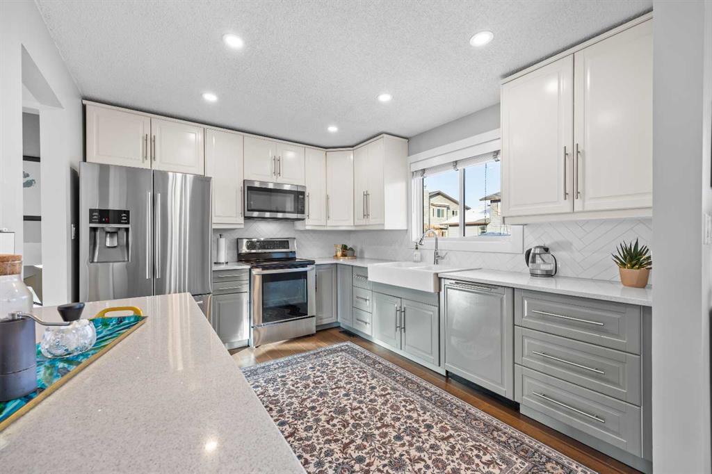 (Sorry Open House Cancelled due to offer.) Homes like this don’t come up often — a fully developed 4-bedroom family home in sought-after Woodhaven offering space to grow, thoughtful updates, and multiple living areas designed for real life. With over 2,300 sq.ft. of developed living space, this well-maintained 4-level split offers both functionality and comfort in one of Okotoks’ most beautiful neighbourhoods, just a short walk to the scenic pathways along the Sheep River, as well as nearby schools, parks, and everyday amenities. The bright main level features a sunken living room with large west-facing windows and a cozy gas fireplace, while the updated kitchen showcases stone countertops, upgraded cabinetry, stainless steel appliances, and a spacious dining area that opens onto the rear deck — perfect for entertaining or relaxed family evenings. Upstairs you’ll find three bedrooms including the primary suite with 3-piece ensuite and double closets, along with a full main bathroom. The lower level adds excellent flexibility with a large family room featuring a wood-burning fireplace, a fourth bedroom, full bathroom, laundry area, and direct access to the garage and backyard. The fully developed basement offers an ideal media or recreation space complete with home theatre setup, flex room, and additional storage. Major mechanical and exterior updates provide peace of mind, including new roof, eaves, fascia and downspouts (2025), new hot water tank (2025), furnace (2020), six new windows (2017), newer water softener, and a new fence in 2023. Central air conditioning adds comfort during the summer months. Outside, the private fenced yard and mature trees create a welcoming outdoor space, complemented by excellent curb appeal and a double attached garage. This is a rare opportunity to move into a mature, established neighbourhood where families stay for years. Check out the video tour here: https://rem.ax/4rLFfZB