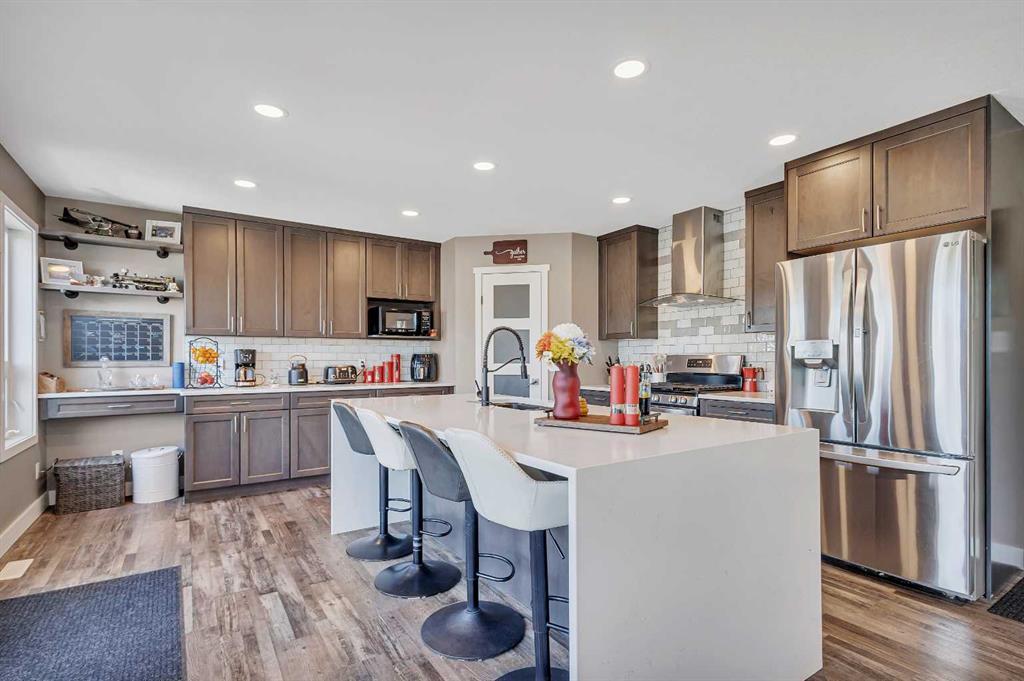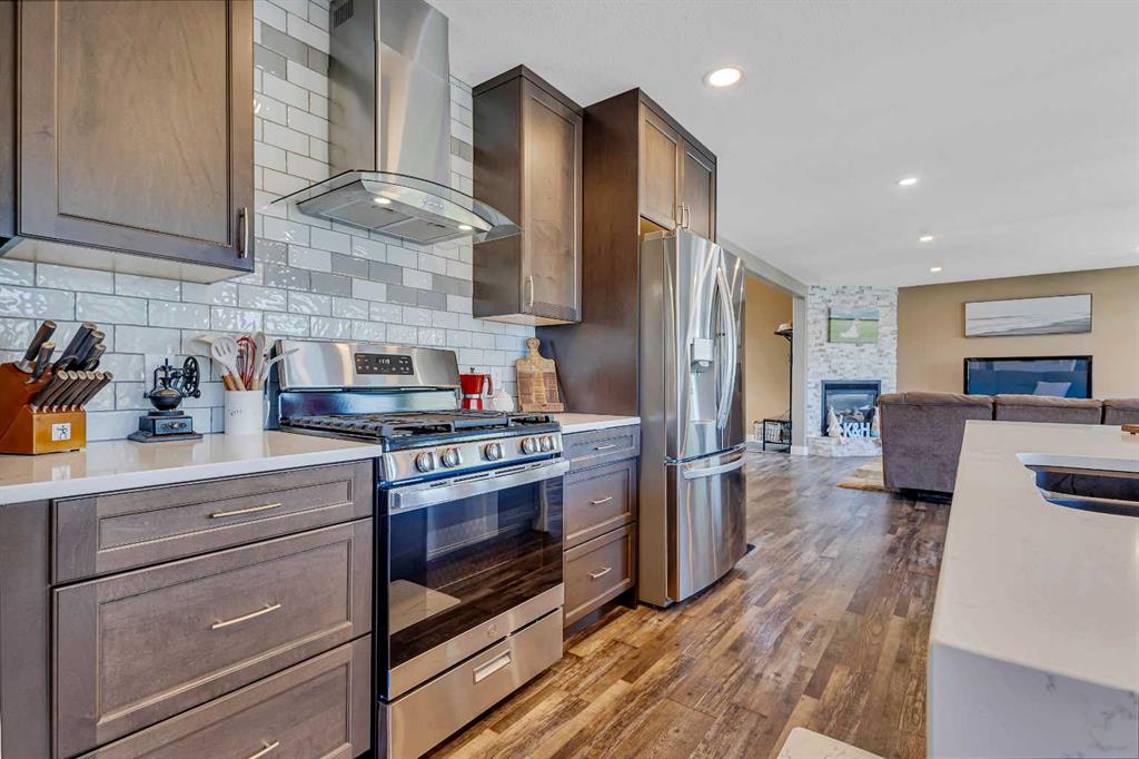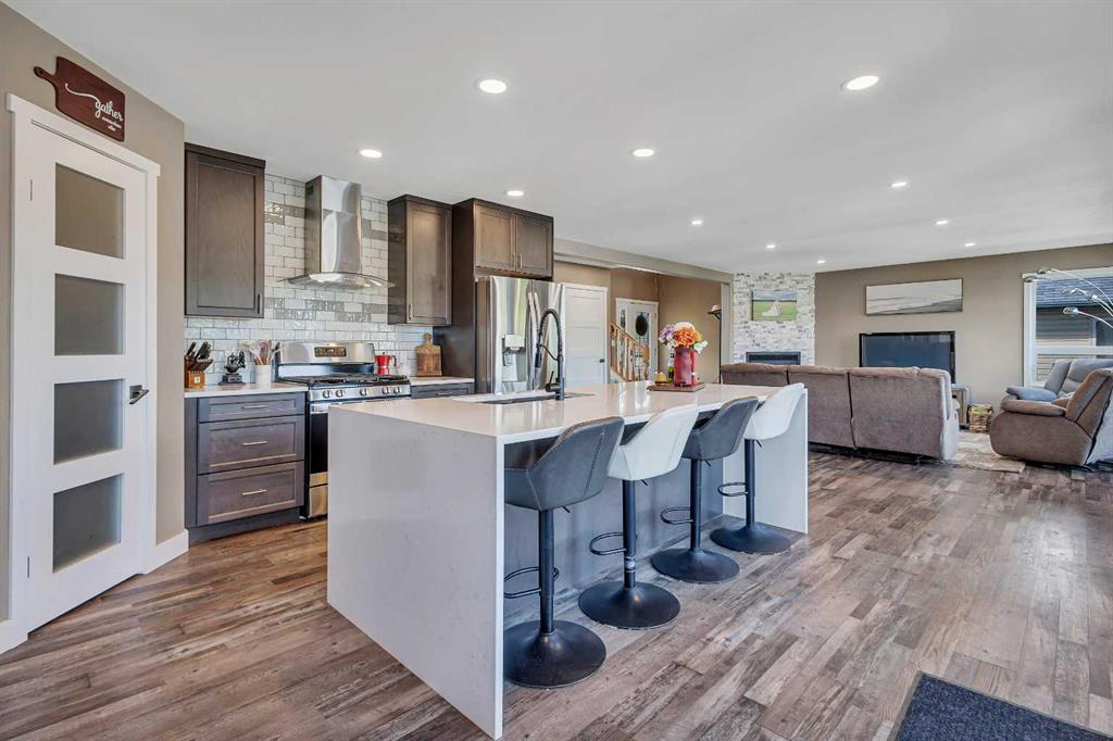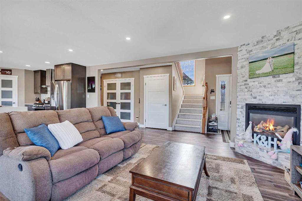Visit REALTOR® website for additional information.Step into your next chapter with this beautifully updated 2-story home in Rocky Mountain House-offering the perfect blend of style and space, complete with both attached.. & detached garages, a bonus room, a newer roof, and vinyl windows that make it truly one of a kind. From the moment you arrive, you\'ll be impressed by charming curb. appeal. Step inside to an open-concept main floor filled with natural light from oversized windows, anchored by a gas fireplace with mantel in the living area. The renovated kitchen is a showstopper-featuring sleek new cabinets, a stylish backsplash, gas range, luxurious waterfall quartz countertops, a breakfast bar, & pantry. A convenient 2-piece bath and mudroom complete the main level. Upstairs, you\'ll find 3 spacious bedrooms, 2 full bathrooms, and laundry right where you need it. The primary suite is a true retreat with a walk-in closet and private 4-piece ensuite. The fully finished basement is a standout feature with a generous rec room, complete with a wet bar/kitchenette, fridge and. stove, a 4th bedroom, and a 3-piece bath-perfect for guests or teens. Outside, enjoy your own private oasis in the fenced backyard with a large deck for summer BBQs and quiet evenings. There\'s ample parking in the back, plus the detached garage adds extra versatility and storage. This home has it all-style, substance, and space to grow.