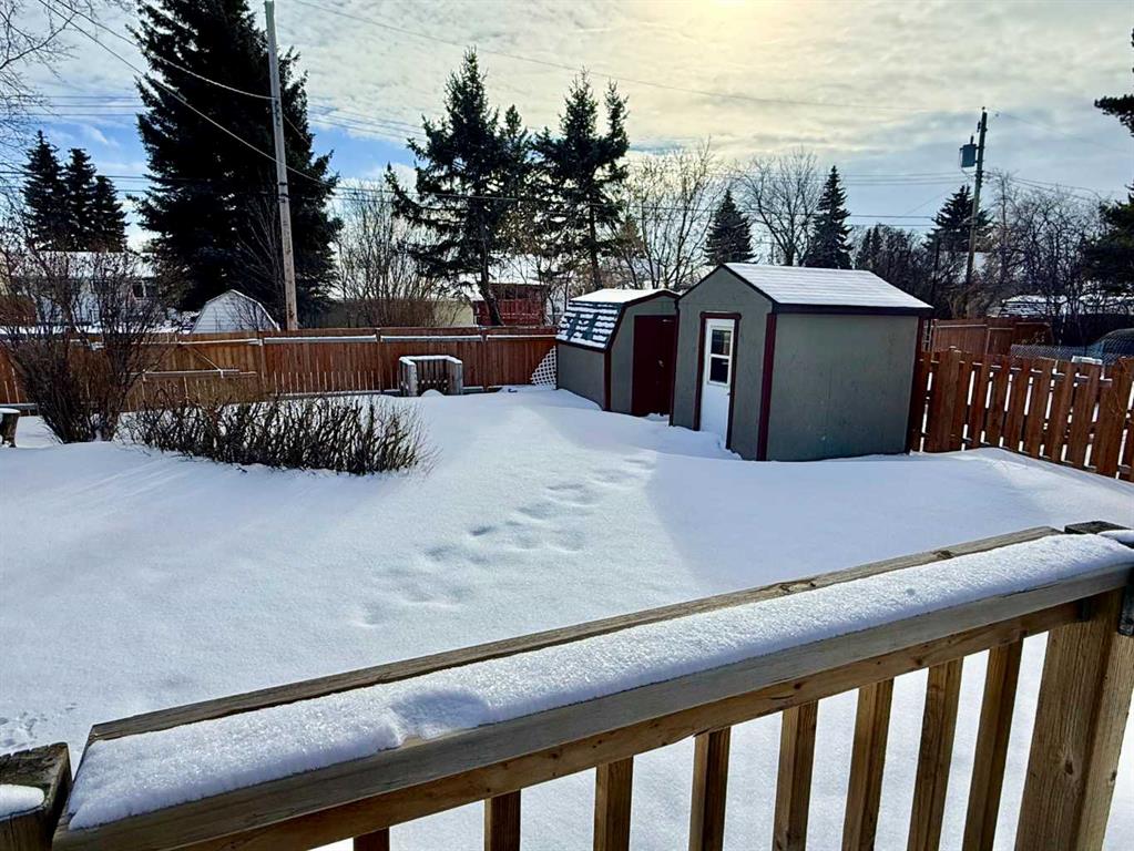 Looking for a cute home and huge lot? This 2 bedroom 2 bath is sure to please. Tastefully renovated into a beautiful space to call home. Features a large mudroom opening up to the dining area and bright kitchen complete with a central vacuum automatic dustpan. Completing the main floor is 2 bedrooms, 4 pc bath and separate living room. Cozy up downstairs with a blanket in front of the wood fireplace or entertain your guests with the convenience of a wet bar area. Lots of built in storage as well as an office or extra storage room if needed. To finish the basement you’ll find a 3 pc bath and laundry. There is so much room outside with this massive lot and a half. Mature trees, newer fence, 2 sheds and large deck are perfect to enjoy those days outdoors. Extra updates are Furnace in 2018 and Hot Water Tank 2025. Newer windows except living room and some basement ones, vinyl plank upstairs and some fresh paint. Located in a quiet area of town close to the ball diamonds and soccer fields. Take a look at this property today before it’s gone.