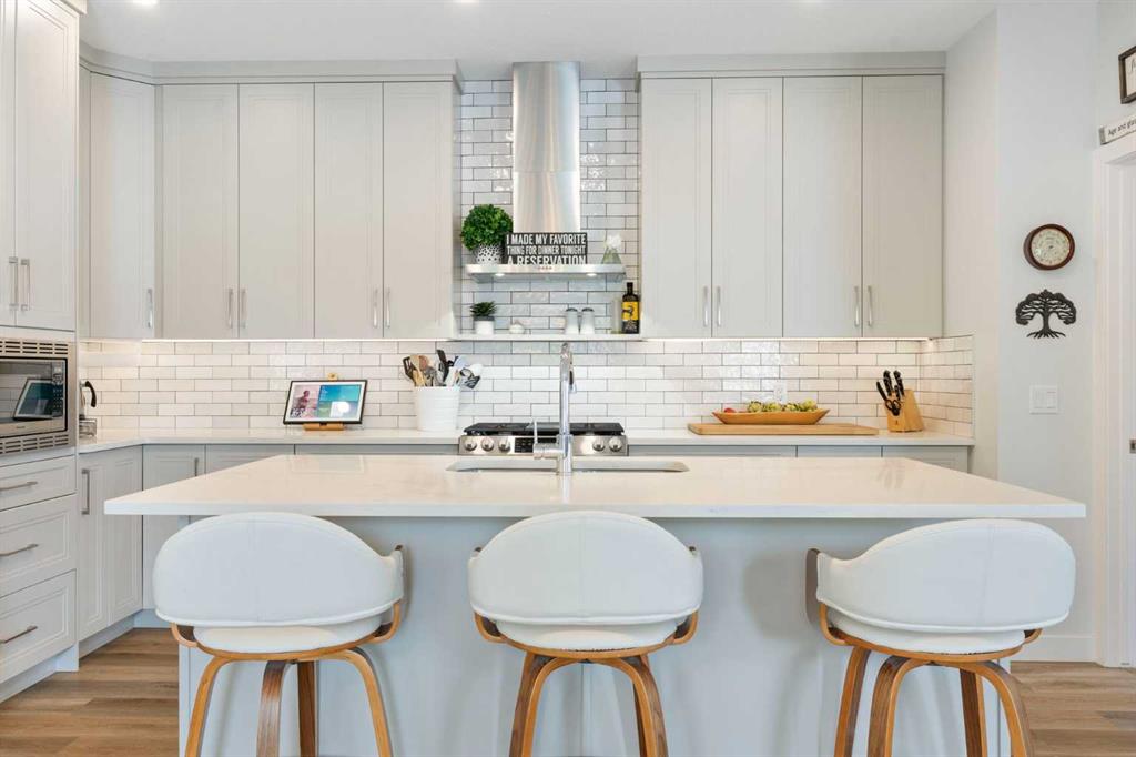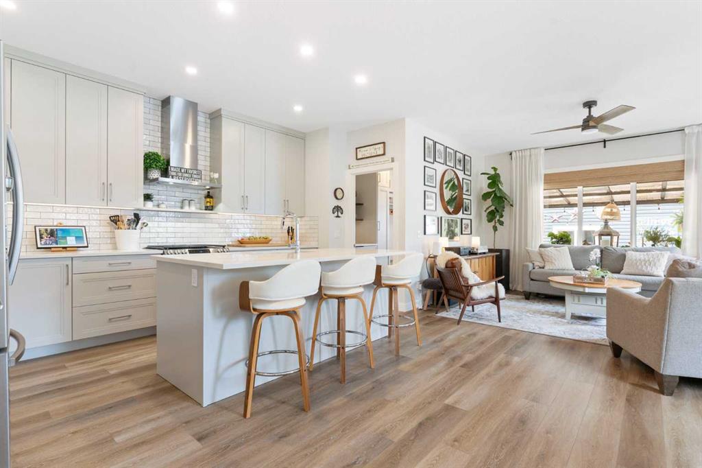 Welcome to 6 Emberside Hollow, a bright corner-lot bungalow located in the heart of Cochrane’s sought after Fireside community. Offering just over 2,030 square feet of well-designed living space, this home delivers modern finishes paired with everyday functionality. The main floor is airy and welcoming with 9ft ceilings, wide plank luxury vinyl flooring, and oversized windows that flood the space with natural light.
