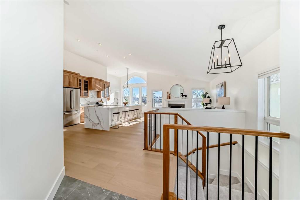 This 3-bed, 3-bath, plus office/den bungalow features brand-new, beautiful custom cabinetry, luxury appliances, a waterfall-edge quartz countertop/ backsplash, custom pot filler —truly a chef’s dream! Curb-less tiled ensuite shower with custom glass, quartz counters throughout, a wet bar on the lower level, and a brand-new upper patio deck, gorgeous custom-engineered white oak hardwood, with custom tile and carpet.