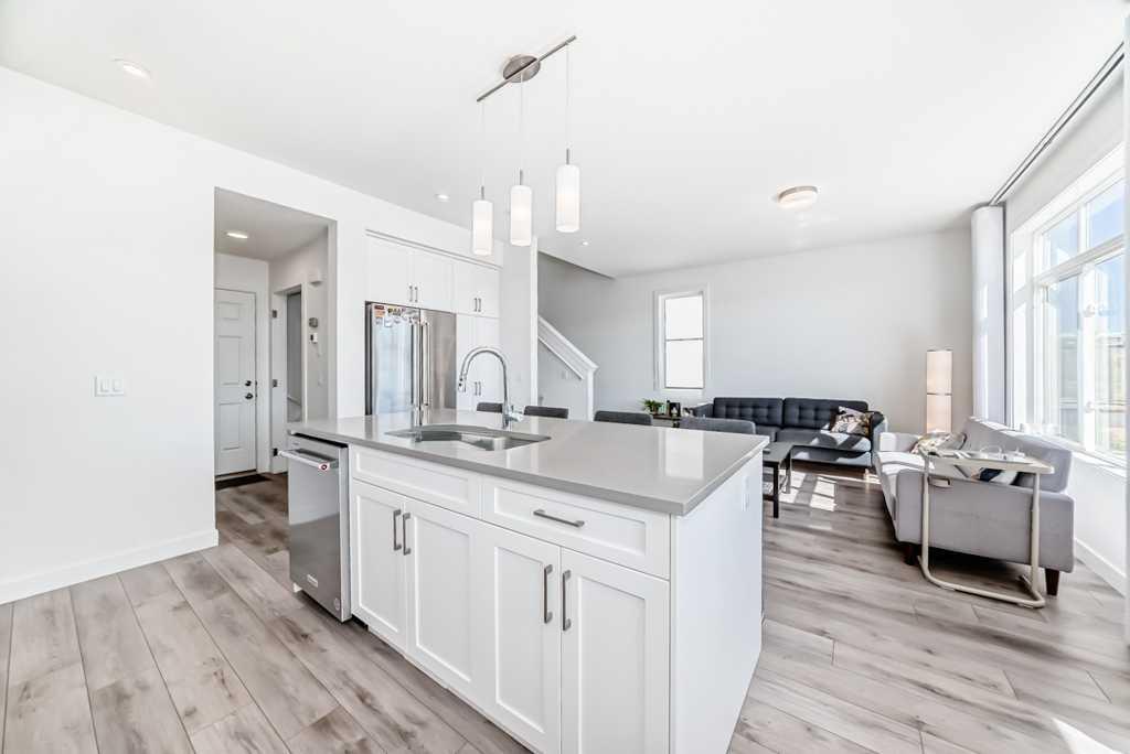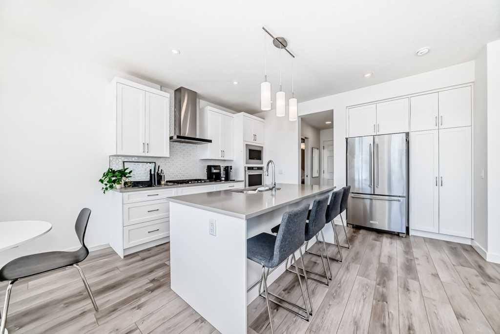 Welcome to Green Space View — a stunning 4-bedroom, 3.5-bath home with a walkout basement in the prestigious Aspen Springs community of Springbank Hill. Built in 2022 and still covered by the New Home Warranty, this thoughtfully designed residence offers nearly 2,000 sq. ft. of total living space and backs directly onto serene green space. Enjoy an east-facing backyard that bathes in the morning sun, creating the perfect setting for coffee on the deck and peaceful starts to your day. The main floor boasts 9 ft ceilings, an elegant white interior palette, luxury vinyl plank flooring, and an open-concept layout ideal for both daily living and entertaining. The gourmet kitchen features crisp white cabinetry, quartz countertops, tiled backsplash, high-end stainless steel appliances including gas cooktop, built-in oven and microwave, extra-wide refrigerator, and a large central island. The bright dining area opens to the upper deck through patio doors, while the spacious living room offers plenty of natural light. A mudroom and 2 pc powder room complete the main level. Upstairs, you’ll find three generously sized bedrooms, a 4-piece main bath, and a convenient laundry room. The serene primary suite is a true retreat, featuring a luxurious 5 pc ensuite with dual sinks, a soaker tub, separate glass shower, and a large walk-in closet. The fully finished walkout basement adds incredible versatility, with a large family/recreation room, a fourth bedroom, and a 3 pc bath, perfect for guests, as a home office or the teenager that wants their privacy. Step outside to your private covered patio and enjoy direct access to the walking path and green space beyond. Attached front drive double garage.. Enjoy the convenience of walking to Aspen Landing Shopping Centre, top tier schools including Rundle College, Webber Academy, and Ambrose University - all within 2.5 km! Dining options just steps away within the complex. Easy access to Westside Rec Centre, multiple golf courses, and nearby country clubs enhances your active lifestyle. Elegant, modern, and move-in ready, this exceptional townhome truly offers the best of low-maintenance luxury living with nature at your back door and amenities just minutes away.