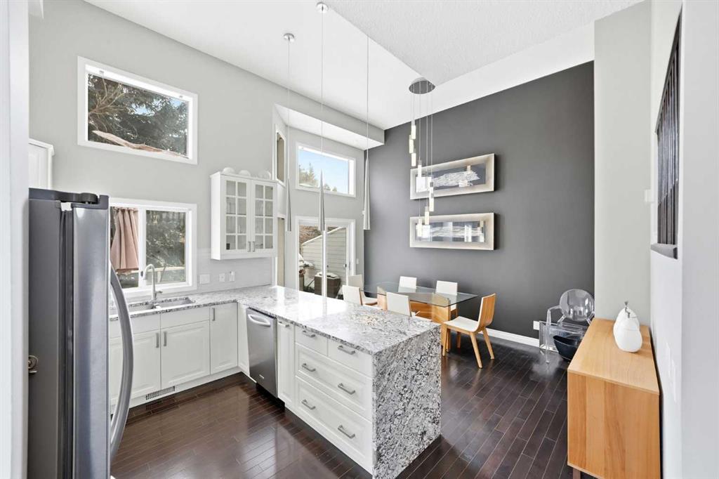 Welcome to Kingsland Villas. This is a stunning 3-bedroom, 2.5-bathroom corner end-unit townhome that perfectly balances style, space, and location. With 1,523 sq ft of thoughtfully designed living space across multiple levels, this renovated home is truly move-in ready. Step inside to soaring vaulted ceilings and an abundance of natural light pouring through oversized windows on three sides. Such a rare advantage of this coveted corner position. The open-concept main floor seamlessly connects the kitchen and dining areas, ideal for entertaining and everyday living. Upstairs, the generous primary suite features a 3-piece ensuite and walk-in closet, plus two additional well-appointed bedrooms and a 4-piece bath. This home has been tastefully updated and comes turnkey with high-end furniture. Simply move in and start living. Practical perks include a double-length driveway offering significantly more parking than neighboring units, plus a oversized single attached garage and main-floor powder room. Location is everything, and this property delivers. Situated minutes from Glenmore Reservoir for year-round outdoor recreation, you\'re also moments from Calgary\'s best restaurants and entertainment along Macleod Trail. Perfect for foodies & outdoor enthusiasts. Families will love the proximity to top schools, parks, and transit, making this an unbeatable choice for those who refuse to sacrifice lifestyle for location. This is more than a home. It\'s a lifestyle. Don\'t miss your chance to own this exceptional property in one of Calgary\'s most desirable communities. Schedule your tour today.