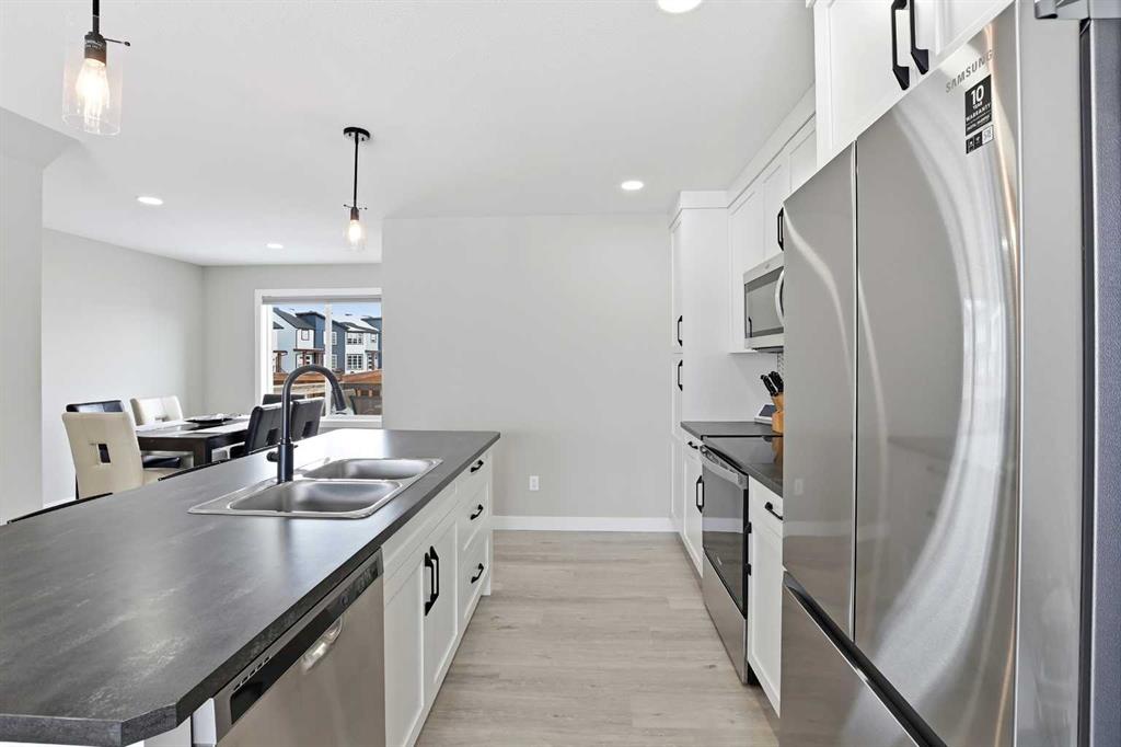 This functional 2-storey plan is thoughtfully designed for everyday living. The main floor showcases gorgeous vinyl plank flooring, large living room windows that allow in plenty natural light, and a bright open-concept layout. The kitchen features beautiful cabinetry, a full tile backsplash, stainless steel appliances, and a sit-up island perfect for casual dining or entertaining. A spacious dining area, convenient 2-piece bathroom, and access to the back deck.