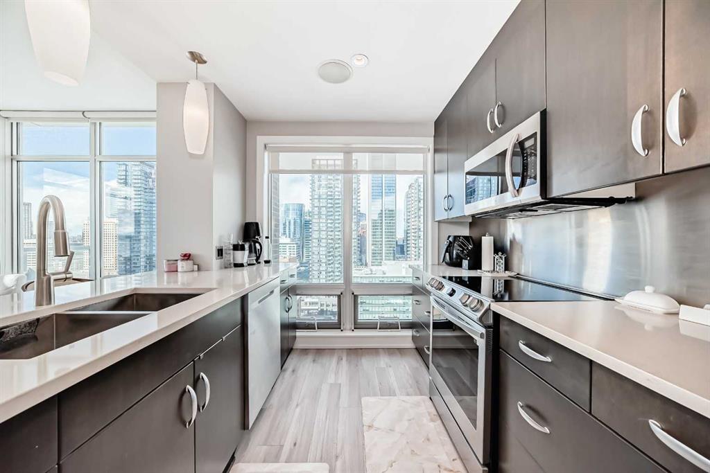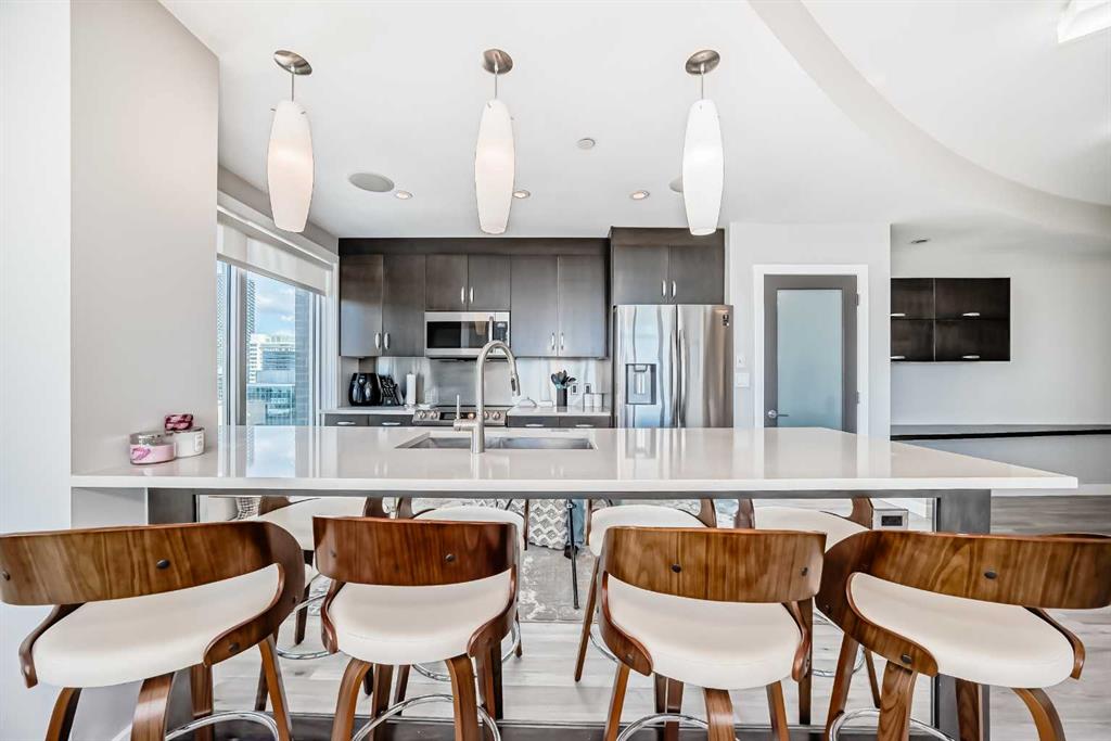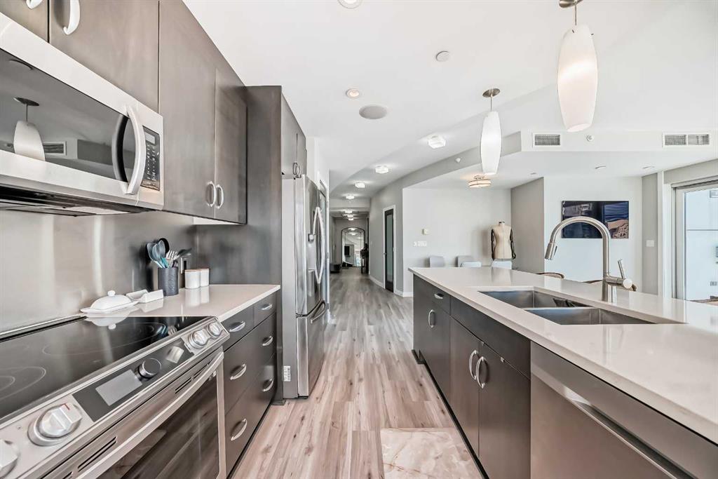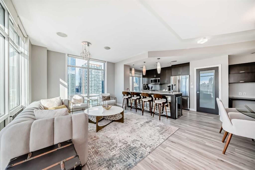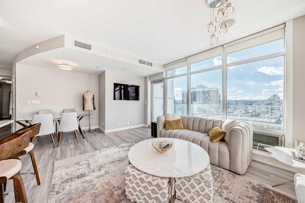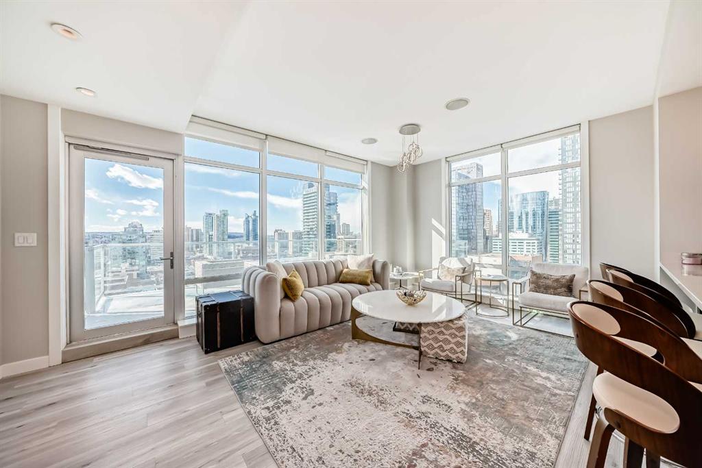 Additional highlights include central air conditioning, titled storage locker, and 2 titled parking stalls. Ideally located in the heart of Calgary’s vibrant urban core, this exceptional residence offers the perfect blend of luxury, comfort, and lifestyle.
