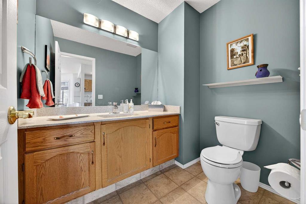 SUNNY END UNIT awaits! This 2-storey, 3-bedroom townhome is an amazing find. Main floor with OAK HARDWOOD floors, new windows (2019) bring in in SOUTH and WEST sunlight. Lots of room for your dining table and entertaining. Kitchen is in the centre of the floorplan with oak cabinetry, newer sink, new oven(2025),dishwasher (2020), microwave(2019), lots of task lighting, room for stools at the counter. SPACIOUS living room with GAS FIREPLACE flanked on each side by lovely windows door to your sunny SOUTH deck, and no neighbours behind. 2-piece powder room, pantry, large closet completes the main floor. Upstairs are three generous-sized bedrooms. Primary is large enough for KING bed, 3-piece ENSUITE w/new shower (2019) and mountain VIEW. Second bedroom also large enough for KING bed! Third bedroom with laminate flooring could also be office or craft room. Fully FINISHED BASEMENT has LOADS of STORAGE, flex room, LAUNDRY w/SINK, and REC ROOM. PolyB has been FULLY REMOVED (2025)! HWT (2019). All this with a front ATTACHED GARAGE, extra parking on the DRIVEWAY, in a well run condo. Welcome to Citadel Terrace: a family and PET-friendly complex surrounded by greenspace with easy access to transit, schools and shopping.