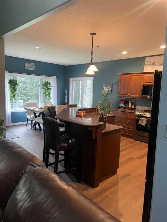The executive custom home was built 2005, it is 1350 sq ft on the main level. Enter through a covered front deck to the open concept living room that flows to the kitchen and dining area to create a cozy vibe even with the high ceilings. All the appliances have been recently replaced and complement the new flooring and granite countertops in the kitchen nicely. Down the hall is a renovated 3pc bathroom, two large bedrooms and main floor laundry. Looking out the large dining and living room windows is the partially covered main deck leading down to the back yard and fire pit.