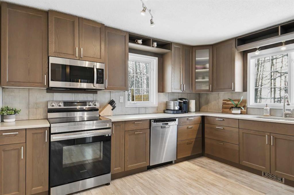 Escape to the peace and privacy of country living on this beautiful 8.92 acre property located just 20 minutes west of Grande Prairie and 10 minutes from Wembley. This well treed acreage offers the perfect balance of open space and mature trees, complete with two ponds, garden area, play space, and a private driveway creating a quiet rural setting. For those needing shop space, the property features an impressive 30\' x 40\' finished and heated garage/shop with a traditional overhead door on one side and a large sliding barn door on the end, providing excellent access for large projects, semi trucks, RVs, or even your old farm tractor. The yard is thoughtfully set up for enjoying acreage life with a garden area complete with greenhouse, a secondary open space for a kids play area and a fully finished shed that could easily serve as a bunkie, hobby space, or playhouse. Inside, the home is bright and welcoming with abundant natural light throughout the main level. The updated kitchen features hard-surface countertops, stainless steel appliances, plenty of cabinetry, and great workspace flowing nicely into the spacious dining area. The sunken living room is a warm and inviting place to gather, highlighted by a wood-burning fireplace and plenty of room for family and friends. The main floor offers three spacious bedrooms along with a large bathroom featuring a relaxing soaker tub and separate shower. Downstairs you\'ll find a fourth bedroom, additional bathroom, and a large rec room complete with a small wet bar, perfect for entertaining. A second rec room with extra storage and a slightly lower ceiling (beneath the sunken living room) creates a cozy space ideal for movie nights, gaming, or a kids’ play area. Over the years the home has seen numerous updates including siding, a newer high-efficiency furnace, updated kitchen, flooring, lighting, and fresh paint, giving the home a much newer feel than its age suggests. Enjoy the outdoors from two large decks — one off the living room overlooking the garden with beautiful morning sun and views down the driveway, and the other off the dining area, perfect for relaxing and catching the evening sunset. This property offers the space, privacy, and versatility that acreage living is all about, while still being within an easy drive to Grande Prairie and Wembley. Book your own private viewing today to experience it for yourself!