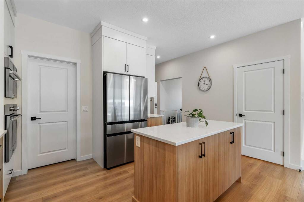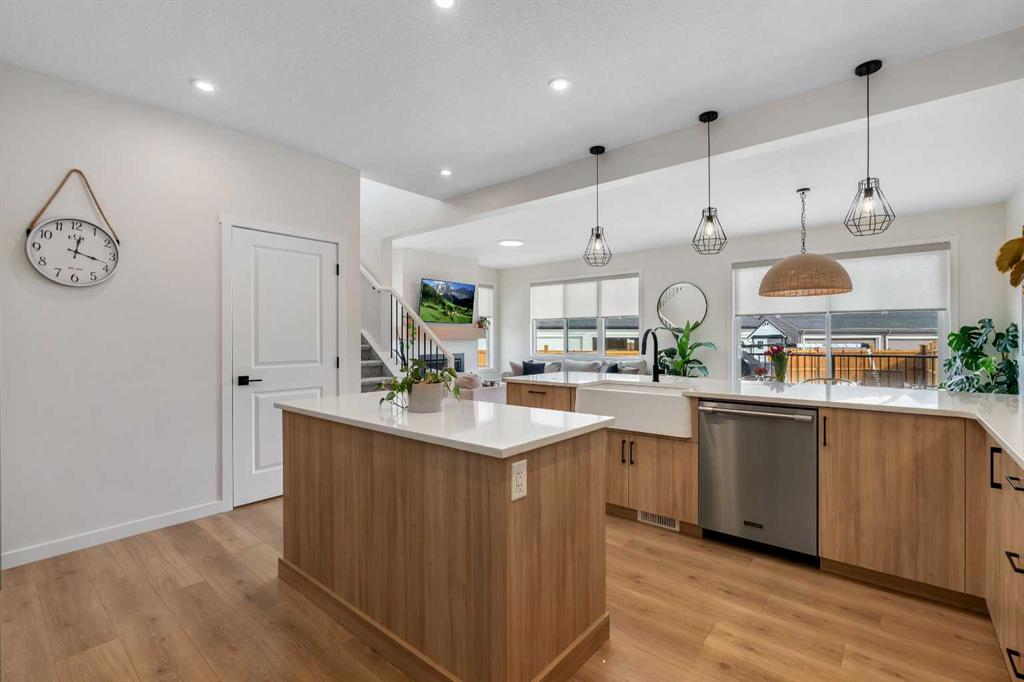 Welcome to 52 Sugarsnap Way SE, a beautifully appointed Baywest built home located in Rangeview—Calgary’s one-of-a-kind Garden-to-Table community. This masterpiece sits on one of the largest lots in Rangeview. A rare opportunity to own a nearly new home where all the upgrades are already complete, and the hard work is done. The main floor is thoughtfully designed for both everyday living and entertaining. The chef’s kitchen is the heart of the home, anchored by a flush eating bar and center island, and surrounded by two-tone full-height ceiling cabinets, quartz countertops, a custom hood fan, a gas cooktop, a wall oven and microwave, and a walk-in pantry finished with custom wood shelving. Premium lighting, upgraded plumbing fixtures, and tasteful window coverings elevate the space. A bright dining nook sits just off the kitchen, while the great room offers warmth and comfort with a gas fireplace and expanded patio doors that lead to the backyard—perfect for indoor-outdoor living. A main-floor office adds flexibility for remote work or study, while a stylish two-piece bathroom and a welcoming front foyer complete this level. Upstairs, the primary retreat is a true sanctuary, featuring a luxurious five-piece ensuite with dual sinks, quartz countertops, a fully tiled shower with upgraded glass, a freestanding soaker tub, and a spacious walk-in closet with dual sections for optimal organization. Three additional bedrooms are generously sized and share a four-piece bathroom with quartz countertops, while the conveniently located laundry room includes an upgraded washer and dryer and sink for everyday ease. The fully finished basement expands your living space with a large recreation room, an additional bedroom, and a four-piece bathroom—ideal for guests, teens, or a home gym setup. Outside, enjoy the benefits of a fully landscaped yard with fencing, sod, and window coverings already in place, saving you time and expense compared to building new. Additional highlights include central air conditioning, a water treatment system, rod iron stair railings, and a double attached oversized garage. The home is even roughed-in for solar, offering future-forward efficiency. This home delivers the best of brand-new construction without the wait—every upgrade thoughtfully selected, every detail complete, and every space ready to be enjoyed.
