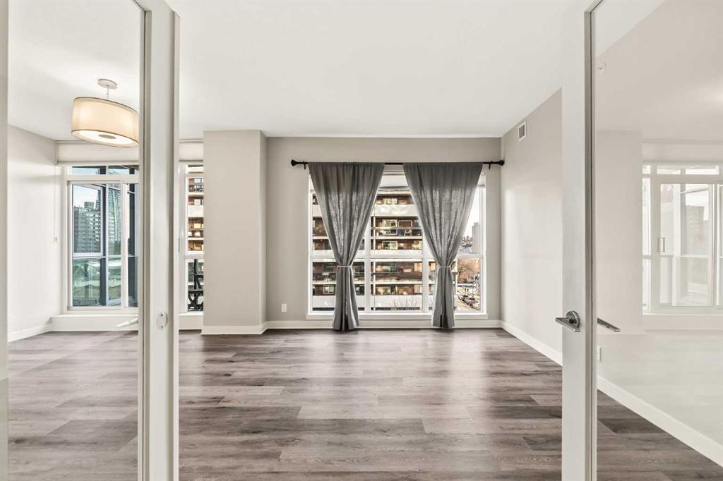 Set in the heart of Calgary’s Beltline, this immaculate corner unit at Xenex on 12th pairs skyline views with a truly effortless downtown lifestyle. With 2 bedrooms, 2 full bathrooms, and a generously sized den/flex room framed by French doors, this floor plan is as functional as it is refined—ideal for a dedicated home office, studio space, or private guest space. Inside, 9’ ceilings and floor-to-ceiling windows wrap the home in natural light and frame cityscape views as pieces of art, while the open-concept living and dining areas feel airy and beautifully connected. The kitchen is designed for functionality, featuring granite countertops, custom cabinetry, a stainless steel appliance package with built-in microwave, garburator, and a breakfast bar that invites everything from quick weekday breakfasts to wine-and-appetizer evenings with friends. The living space flows seamlessly to the balcony through sliding doors—your front-row seat for morning sun, evening lights, and that unmistakable downtown energy. The primary bedroom offers excellent views, a walk-in closet, and a private ensuite with granite countertops. The second bedroom is well-sized and features floor-to-ceiling windows, making it a flexible option for guests, a roommate, or an additional office setup. Added conveniences include front desk concierge, Hunter-Douglas blinds, in-suite laundry, heated bathroom floors, extra in unit storage, central air conditioning, one titled heated underground parking stall, and a separate storage locker. Beyond your front door, Beltline delivers the best of the inner city—coffee shops, restaurants, boutiques, and daily essentials all within minutes. You’re an easy walk to Safeway Beltline for groceries and quick errands, and surrounded by some of Calgary’s most-loved café and dining options throughout the neighbourhood.