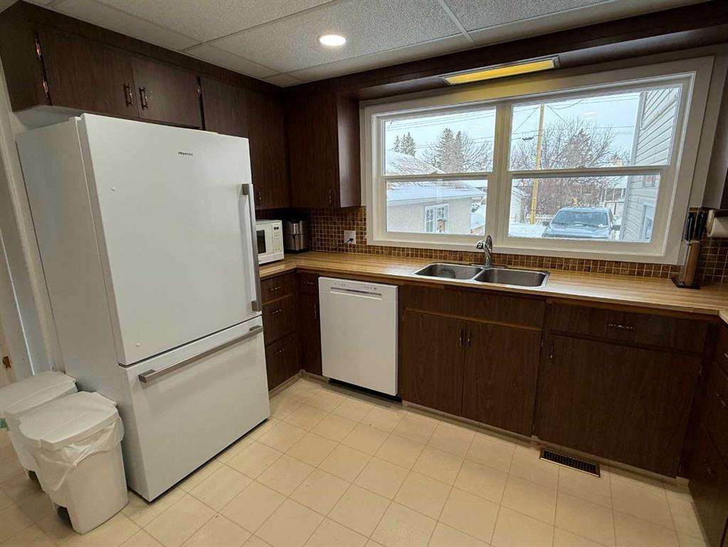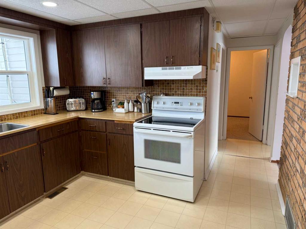 MUCH More than meets the Eye: Well Maintained Home with Large 2 Level Addition (1982yr) which essentially turned this Residence into a 3 Level Split. Currently has 4 Bedrooms and 2.5 Bathrooms. Addition includes large Livingroom with inviting gas Fireplace, small Utility space & thirst quenching Beverage Centre on 1st Floor, plus Garden door(s) to the outside 14ft x 20ft Patio. 2nd Floor is Home to Master Bedroom with 4pc Ensuite and large Closet. 2nd Bedroom is on main floor with 2 more good sized bedrooms in the basement, plus a spacious laundry area and a 3pc bath. Basement also houses the 2nd utility and extra storage areas. Windows plus Siding on the Addition were upgraded in 2024/25, along with New main floor windows on the original Home. Shingles were recently touched up as well. Property is well treed for privacy & shade along the west boundary with a longer driveway that leads to the single Heated Garage with 220V power and plumbed for work with air tools. Rear access to property via back alley provides ample additional parking options for small or larger vehicles & trailers. Property is well situated within 1 block to 2 different schools. Rail fence out front, lawn, and perennials along the East side. Well worth your wait, this is likely the property you\'ve been waiting for! Call Today:)