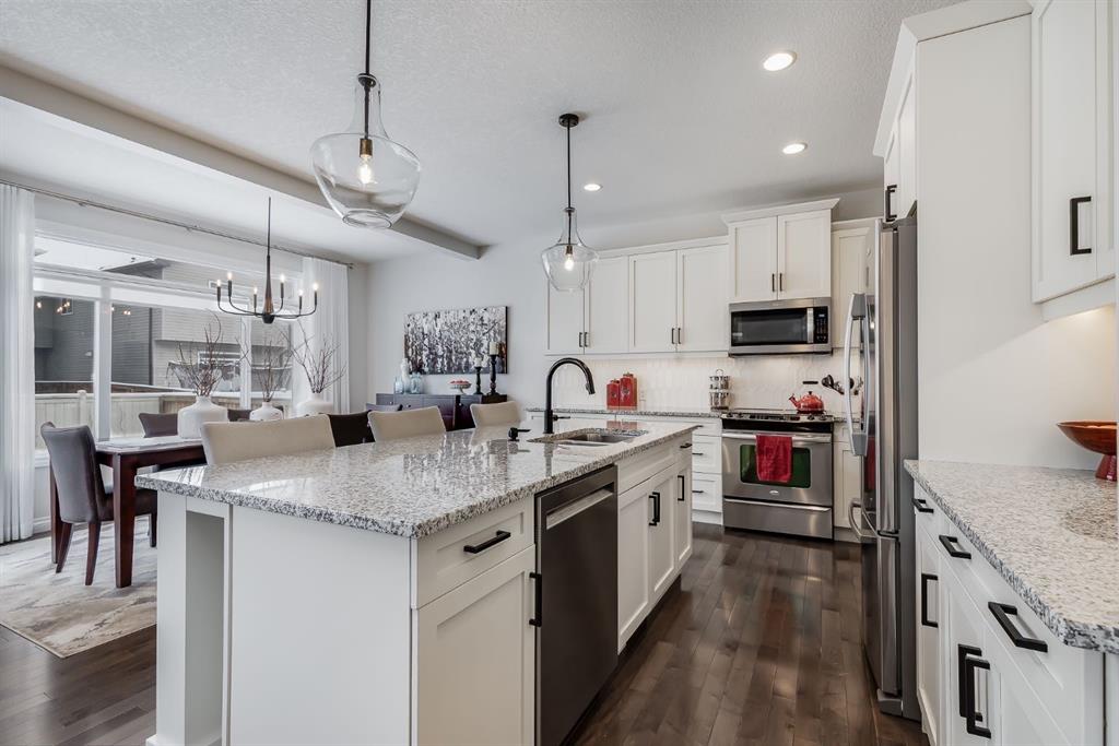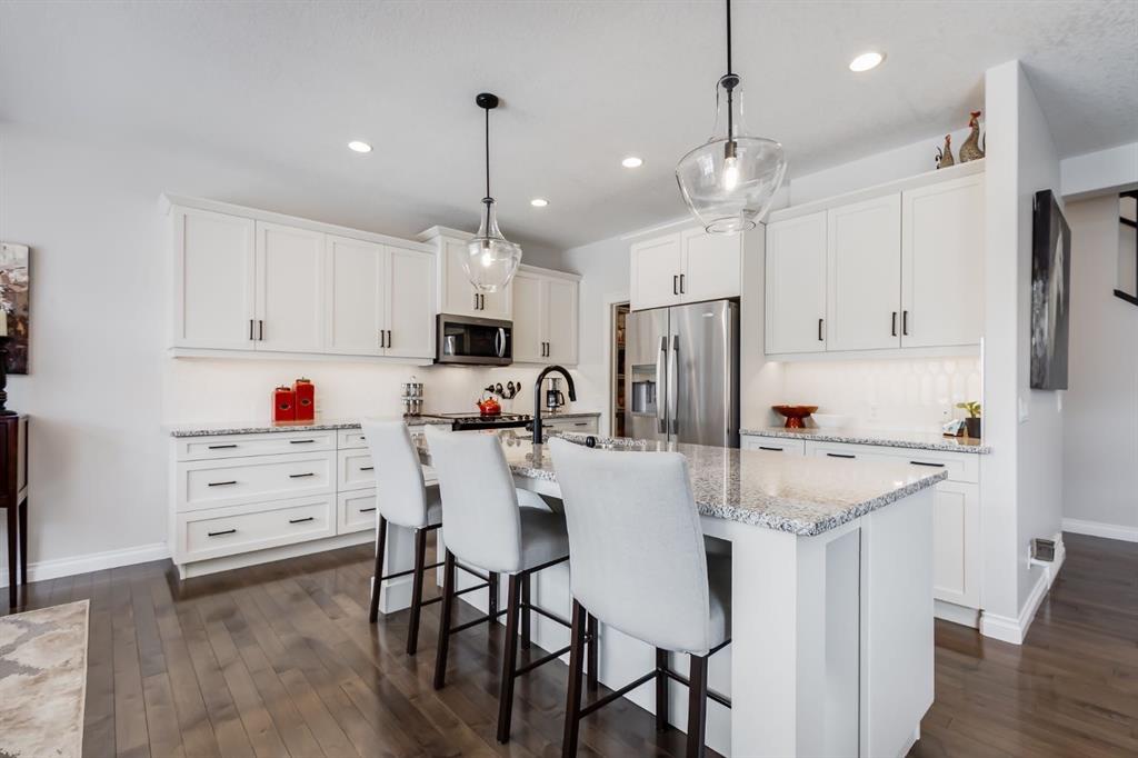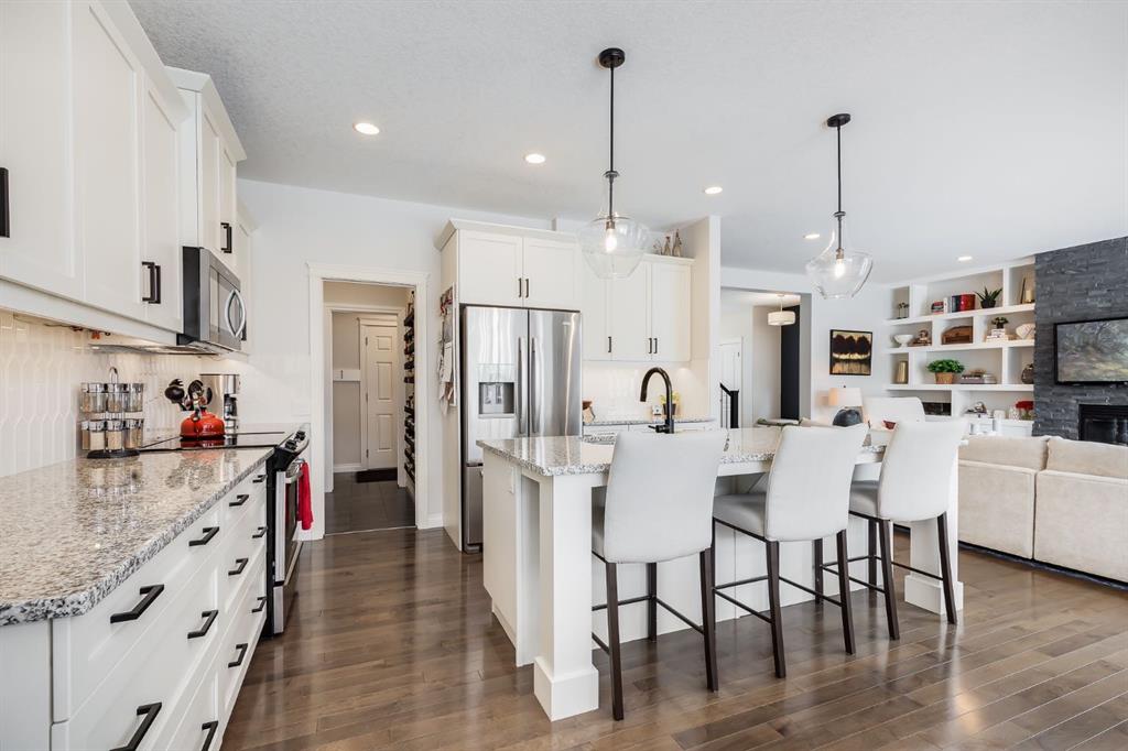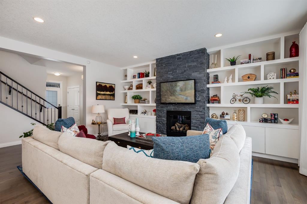This Stunning Executive Style Home has over $50,000 of Recent Updates that elevate the Decor and Functionality making it Unique and Gorgeous. This Home exudes PRIDE OF OWNERSHIP as it is so well cared for. When you arrive, you are welcomed into the spacious foyer with a large seating bench and the Hardwood Flooring that leads to the Spectacular Living Room that features a Custom Built Wall Unit that surrounds a beautiful Fireplace with Stone Wall. The Wall Unit has amazing Shelves for you to showcase your items and books plus extra cabinetry for storage. The Dream Kitchen has Ivory Coloured Cabinetry with Undermount Lighting, Lots of Pot and Pan Drawers, Upgraded Appliances, Upgraded Lighting, Granite Countertops and an Upgraded Island. The Pantry walks through to the Mudroom that has additional storage and lots of hooks for backpacks and coats. The Dining area can host a larger table and opens to the Large Deck. The Staircase with upgraded metal railing leads to the Bonus Room and Upper Laundry Room. The Primary Bedroom can host a King Suite and has a Ensuite with Dual Vanities, Soaker Tub and Shower Stall. There is New Carpets on the Upper Level. The Lower Level has been Renovated with a Fantastic Wall Unit in the Recreation Room with tons of Cabinetry for Storage, a Beautiful Electric Fireplace, and an incredible Wet Bar with Wine Fridge, Undermount Lighting, Desk area, and more storage. The 4th Bedroom has a Custom Built in Closet and Modern 3 pc Bathroom with Shower Stall complete the Lower Level. This Home also has a Water Softener, Freezer, and Upgraded Window Coverings. The rear of the home has a Large Yard for the kids to play and an oversized deck perfect for you to enjoy all summer long. Located close to Nose Creek Elementary School, pathways and easy access to transportation and amenities. This Stunning Home is ready for your family to make it yours. Ensure to watch the video tour on Realtor.ca or MLS Listing