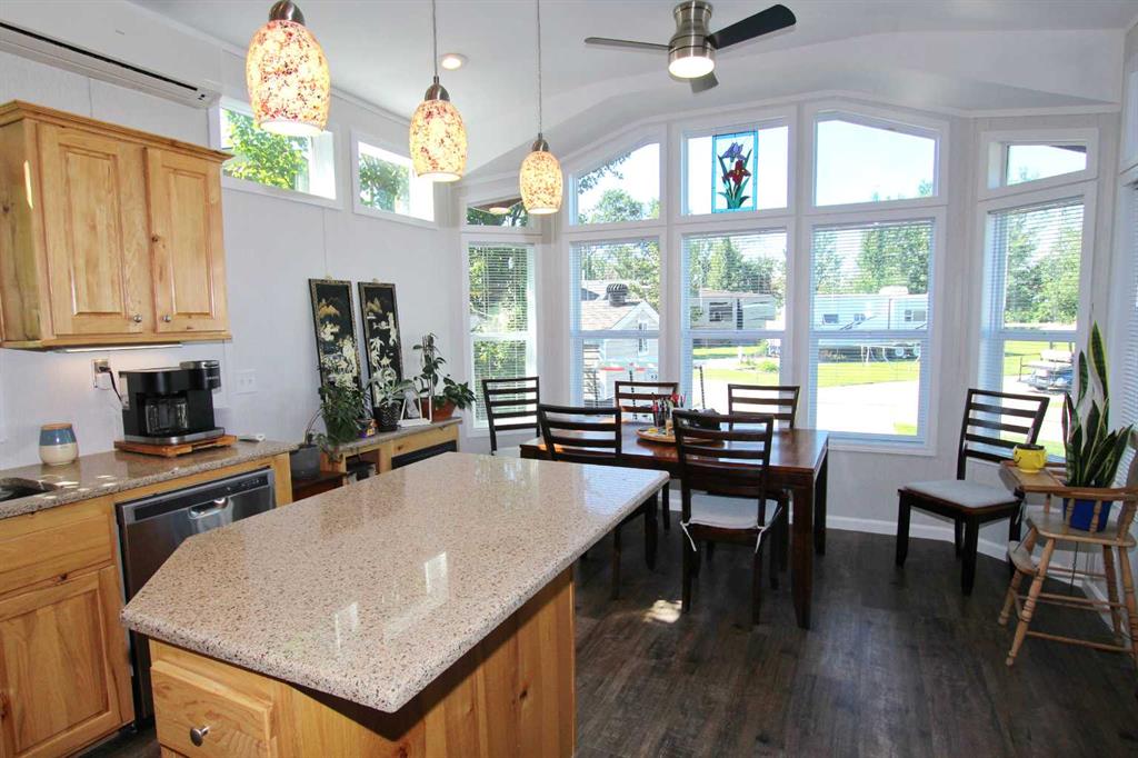 Welcome to your perfect getaway at Gleniffer Lake! This immaculately kept 1 bedroom, 1 bathroom retreat is ideally located just steps from the outdoor pool. Enjoy a bright, open-concept kitchen and dining area that flows seamlessly into a sun-filled living room, complete with cozy wood burning stove—ideal for relaxing or entertaining. Step outside to your private, covered back deck and fully fenced, beautifully landscaped yard—perfect for morning coffee or evening BBQs. This vibrant, gated community offers something for everyone: a golf course, sandy beaches, marina, boating, fishing, two outdoor pools, one indoor pool, hot tubs, basketball and beach volleyball, games rooms, an exercise facility, pickleball courts, restaurants, and a general store. Bonus features include a golf cart, storage shed, and all furniture (less personal items)—just move in and start enjoying lake life! So much to do for the whole family.