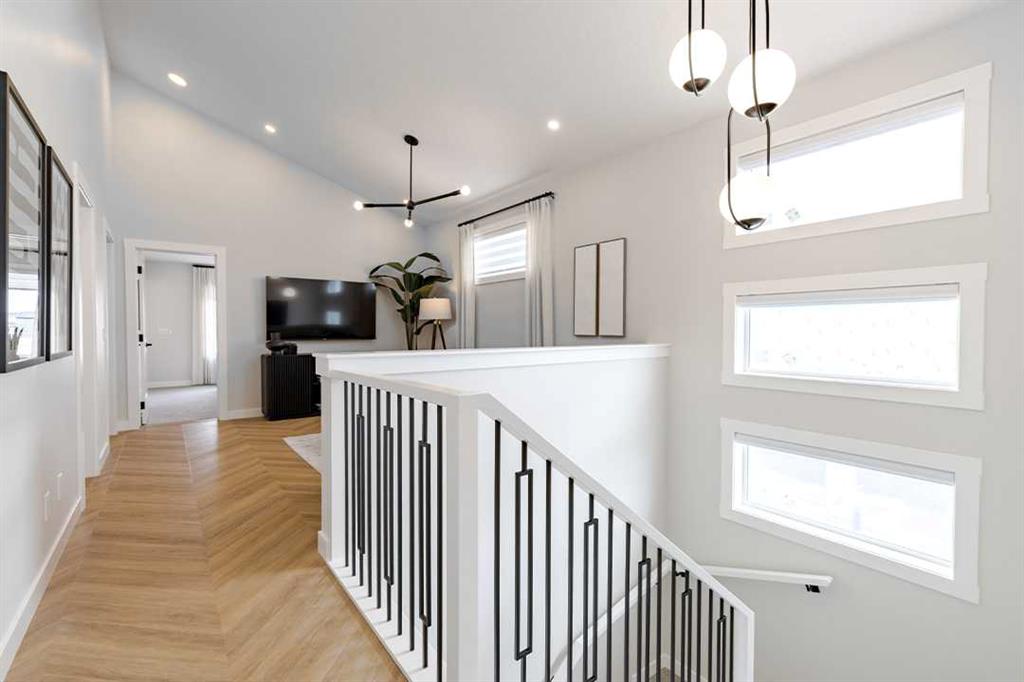 Welcome to the Katalina by Shane Homes, a pre construction home with a tentative 10-12 month possession timeframe. This front-drive home with a double attached garage is located in the community of Rose Ranch. The main floor features a full bedroom and full bathroom with shower, ideal for guests. The open-concept layout includes a living room with electric fireplace, dining nook, and a kitchen with island seating and a walk-in pantry. Upstairs offers three bedrooms, including the primary bedroom with dual vanity ensuite, soaker tub, separate shower, and walk-in closet. All upstairs bedrooms include walk-in closets, along with a full laundry room and an additional full bathroom. The undeveloped basement is ready for potential future development and includes rough-ins. This home can be customized to suit buyer needs. Photos are illustrative and for representative purposes only.