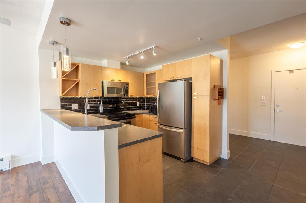 Experience the best of inner-city living in the heart of Mission, one of Calgary’s most vibrant and walkable communities. Just steps from the scenic Elbow River pathways and surrounded by cafés, restaurants, boutiques, and everyday amenities, this incredible location offers the perfect balance of urban energy and natural beauty.Inside, this thoughtfully designed home combines comfort and functionality. The open-concept layout creates an inviting flow between the kitchen, eating nook, and living room—ideal for both everyday living and entertaining. The kitchen features stainless steel appliances, ample cabinetry, and a raised breakfast bar that’s perfect for casual dining or gathering with friends. The adjoining eating nook seamlessly connects the space, allowing for effortless conversation while hosting. The living room is warm and welcoming, anchored by a cozy fireplace with a tile surround. Large windows invite in natural light, and direct access to the back deck extends your living space outdoors—ideal for enjoying a quiet morning coffee or relaxing in the evening.The spacious primary bedroom offers comfort and privacy, complete with convenient access to a well-appointed 3-piece bathroom featuring a stand-alone shower. Whether starting your day or winding down, this space feels both practical and refined. A versatile den sits just off the front entrance, making it the perfect work-from-home office, creative studio, or play space. Additional highlights include in-unit laundry for everyday convenience, a titled parking stall, and a dedicated storage unit, providing the extra space you need for seasonal items and gear. With its unbeatable Mission location near the river pathways and every amenity imaginable, paired with a functional and stylish interior, this home offers an exceptional opportunity to enjoy connected, carefree urban living.
