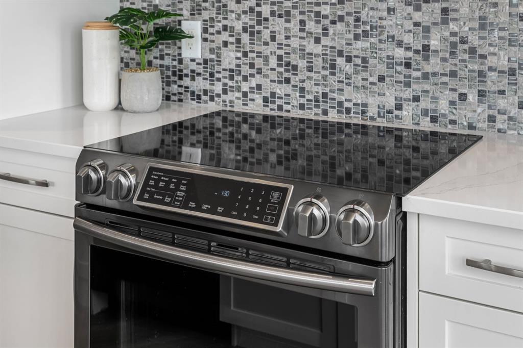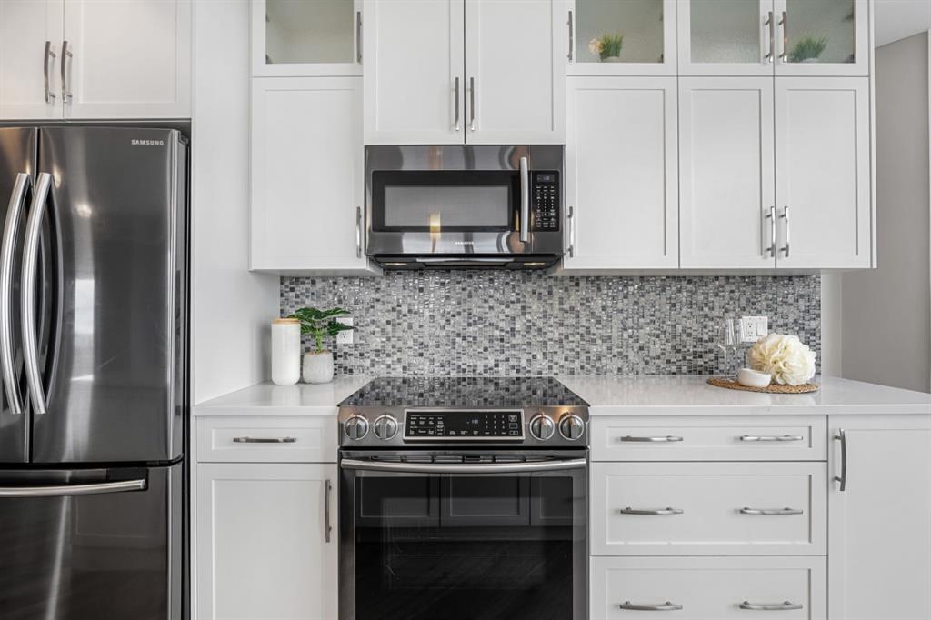 Welcome to penthouse living at the Groves of Varsity. Situated on the top floor, this corner suite captures unobstructed downtown views, beautiful natural light, and a layout that truly lives well day to day. With 10-foot ceilings and expansive windows, the space feels open and bright throughout. The private balcony, included in only select corner units, offers a gas BBQ hookup and two separate access points: one from the main living area and another from the secondary bedroom. It’s the perfect spot for morning coffee, fresh air, or evening city views. This thoughtfully designed 2-bedroom + den home offers exceptional privacy, with both bedrooms featuring walk-through closets and their own ensuite bathrooms. The primary suite includes double sinks and a glass shower, while the secondary ensuite offers a tub/shower combination, making it ideal for guests. A separate 2-piece powder room is a rare and practical addition for condo living. The kitchen is finished with quartz countertops, induction cooking, sleek cabinetry, and quality appliances. Luxury vinyl plank flooring runs throughout, complemented by custom built-ins and well-planned storage solutions. The secondary bedroom is equipped with a built-in Murphy bed and integrated desk, allowing the space to transition seamlessly between guest room and home office. Hunter Douglas window coverings and dual-zone central A/C ensure comfort year-round, and the in-suite Miele washer and dryer add everyday convenience. This unit includes two titled underground parking stalls that are side-by-side (not tandem), along with a rare double-sized assigned storage locker. Dedicated bike storage is also available in the parkade. Built with steel and concrete construction, the building offers a solid and quiet living environment. Residents enjoy rooftop amenities including a fully equipped fitness centre, steam rooms, an owner’s lounge that hosts yoga classes, and a large terrace with BBQ areas. An attached professional building provides exceptional convenience with a pharmacy, medical and dental clinics, and a coffee shop just steps away. Groceries, restaurants, shopping, banking, and the LRT are all within walking distance. Top-floor, corner location, skyline views, side-by-side parking — a rare opportunity in one of NW Calgary’s most sought-after buildings.