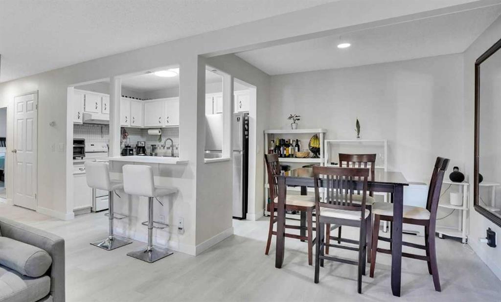 Welcome to 141 Cedar Springs Gardens SW, an exceptional 923 sq. ft. renovated townhouse in the heart of Cedarbrae—offering refined comfort, thoughtful updates, and outstanding value within one of southwest Calgary’s most established communities. Larger than many units in the complex and meticulously maintained, this bright and inviting home features a functional open-concept layout enhanced by durable luxury vinyl plank flooring, a fresh neutral palette, and abundant natural light from its sunny North-facing exposure—perfect for enjoying morning coffee on your porch and garden space. The white kitchen is beautifully updated with sleek cabinetry, subway tile backsplash, generous counter space, and a convenient island that seamlessly connects to the dining and living areas. A cozy fireplace anchors the living room, creating a warm and welcoming atmosphere ideal for everyday living and entertaining. The primary bedroom offers a walk-through closet leading to a private two-piece ensuite, while the second bedroom provides flexible space for family, guests, or a home office. A renovated four-piece bathroom adds modern comfort, and in-suite laundry plus additional freezer space enhance practicality. Rarely found in this complex, this unit offers the opportunity of two heated underground parking stalls—one assigned that comes with the unit, and one additional leased stall ($40/Monthly) located side-by-side—and possibilities to rent a 3rd parking stall if you need them., along with bike storage and ample visitor parking. Situated within walking distance to shops, restaurants, coffee spots, schools, parks, playgrounds, and the Cedarbrae Community Centre, residents also enjoy quick access to South Glenmore Park pathways, Fish Creek Park, Brae Centre amenities, Southland LRT, Stoney Trail, and Macleod Trail. Set in a well-managed, pet-friendly complex, this move-in-ready home offers the ideal blend of space, convenience, and long-term investment. Cedarbrae is a mature and welcoming neighbourhood known for its quiet, tree-lined streets and strong sense of community, ideal for families and long-term living. Post tension Cable only in the parkade. the townHouses does not have post tension cable