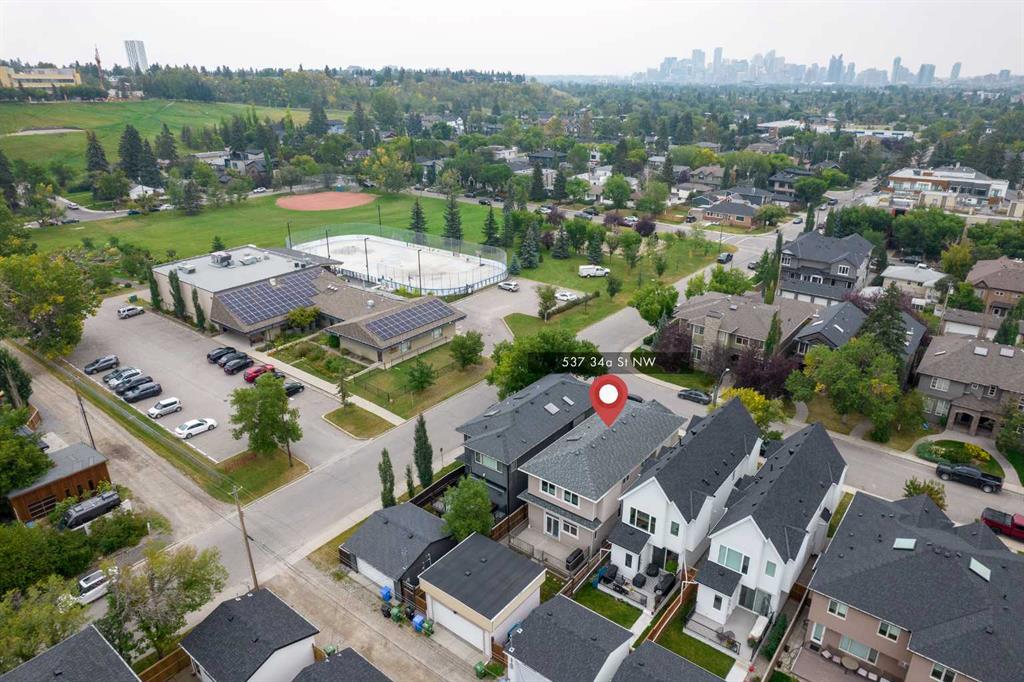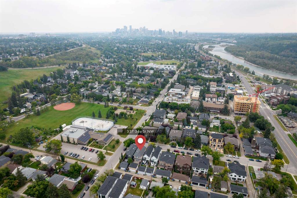 Your exciting forever home in the heart of Parkdale, set on 30 x 120 foot flat lot. This beautiful property features quiet luxury perfect for a family and is steps away from a peaceful yet vibrant community center. The playground, skating rink, and community garden offers amenities for individuals of all ages. Its proximity to Edworthy Park and Foothills Hospital add additional convenience without the noisy disruption. Enjoy walking, running, or cycling the pathways just a few blocks away from the Bow River. The property features a detached high ceiling garage connected by a garden with entry option to the house via the side or through a spacious stone patio. The main floor represents comfort and function for everyone. A practical mud room leads directly to the pantry, which provide abundant floor to ceiling cabinets for added storage space. These custom cabinets with silent close function wrap around to the heated tile kitchen that is every home chef\'s dream. This space features high quality Miele steamer/convection oven, fridge, dishwasher, microwave, and a 5 burner Capital gas stove. It boasts 10\' high ceilings with plenty of natural light along with textured glass windows for added privacy. A spiral staircase leads to the 2nd floor, which consists of master bedroom with a walk in closet and a fully equipped bathroom. The other side of the floor has 2 bedrooms along with a spacious living room. The carpeted in-floor heat throughout in the basement with an additional bedroom and full bath, extending towards a large living room and bar space. Equipped with air conditioning, this property is perfect for your everyday needs.